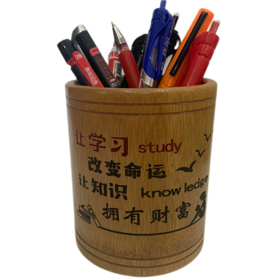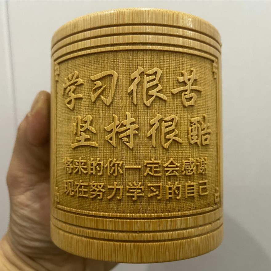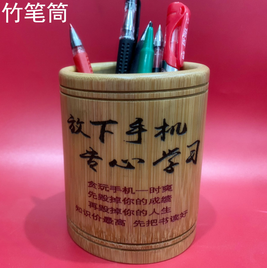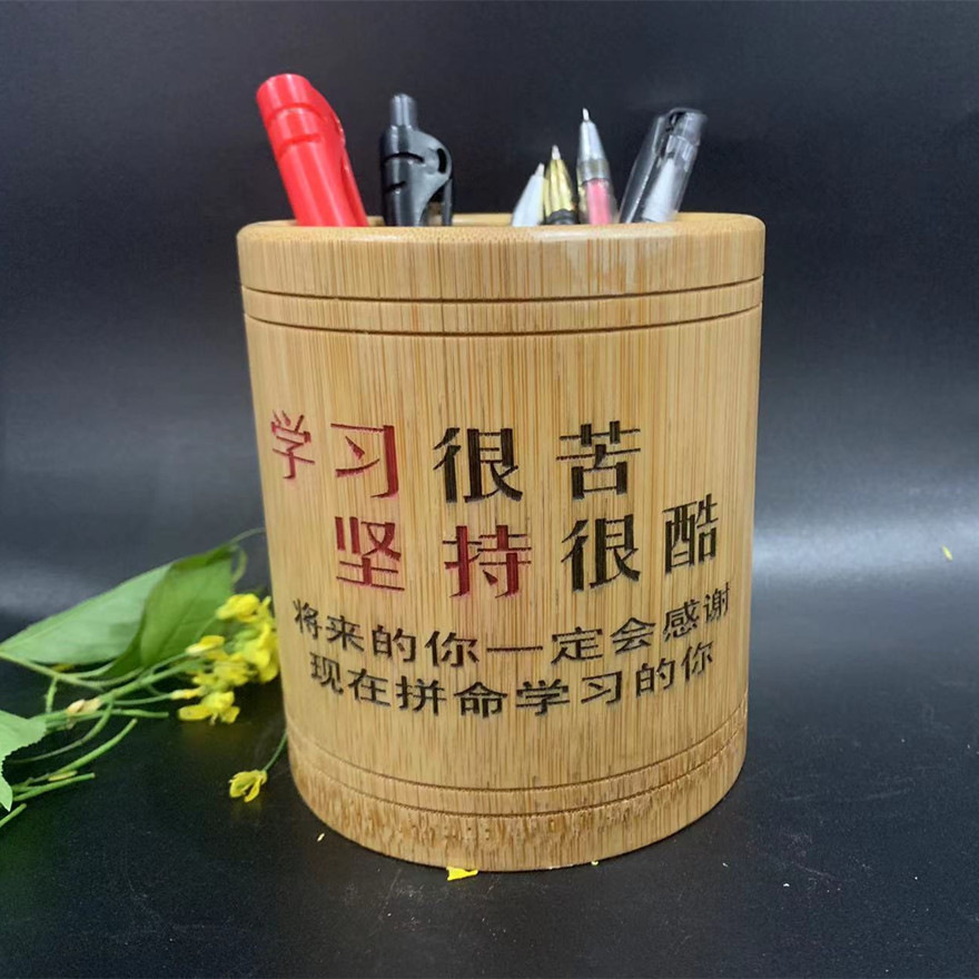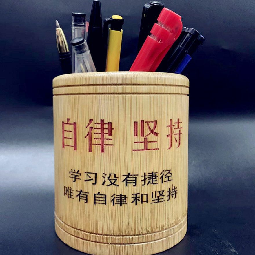 초등 및 중등 학교 학생을위한 대나무 조각 펜 홀더 영감을주는 학생들은 글자 학습 용품 창조적 인 책상 배럴 연구 보관 상자를 설정합니다.스토어 가기