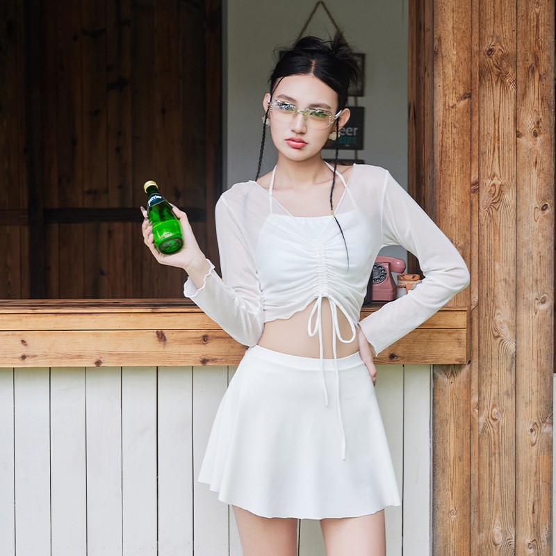 새로운 여성 분할 비키니 목 스트랩 요정 해변 온천 휴가 수영복 여성 도매