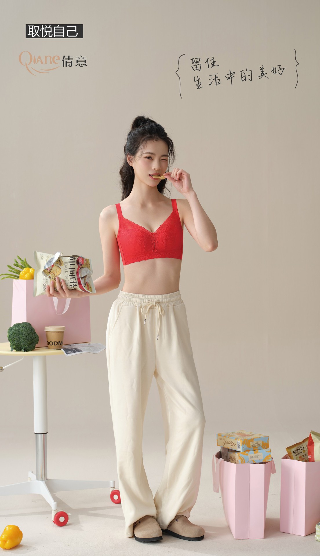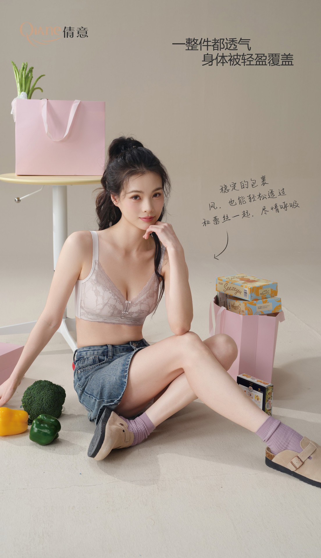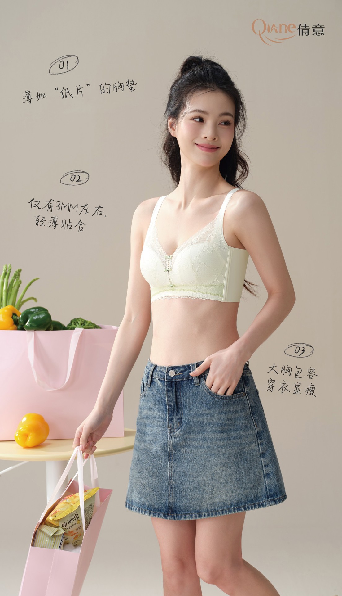 Qianyi 속옷 9947 경량 통기성 샌드위치 종이 B 컵 푸시 업 처짐 방지 조정 가능한 브래지어스토어 가기
