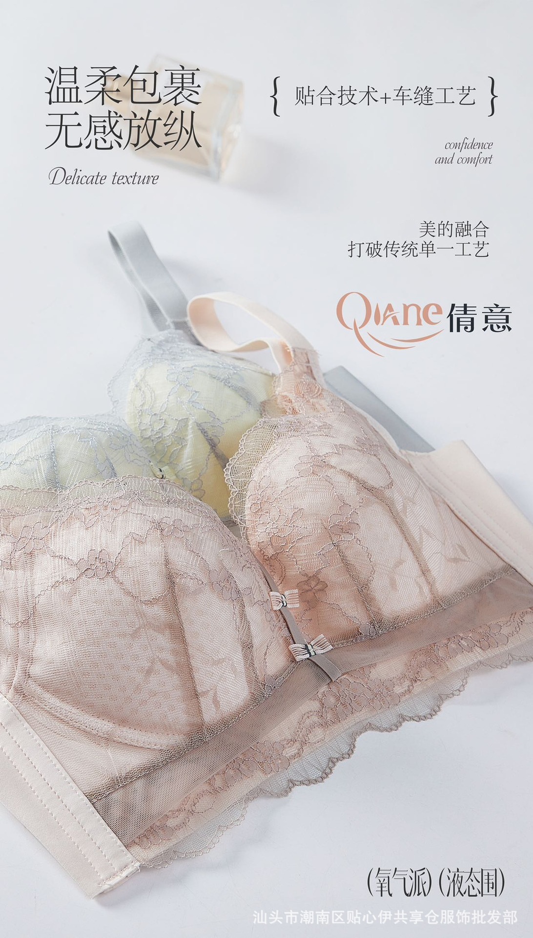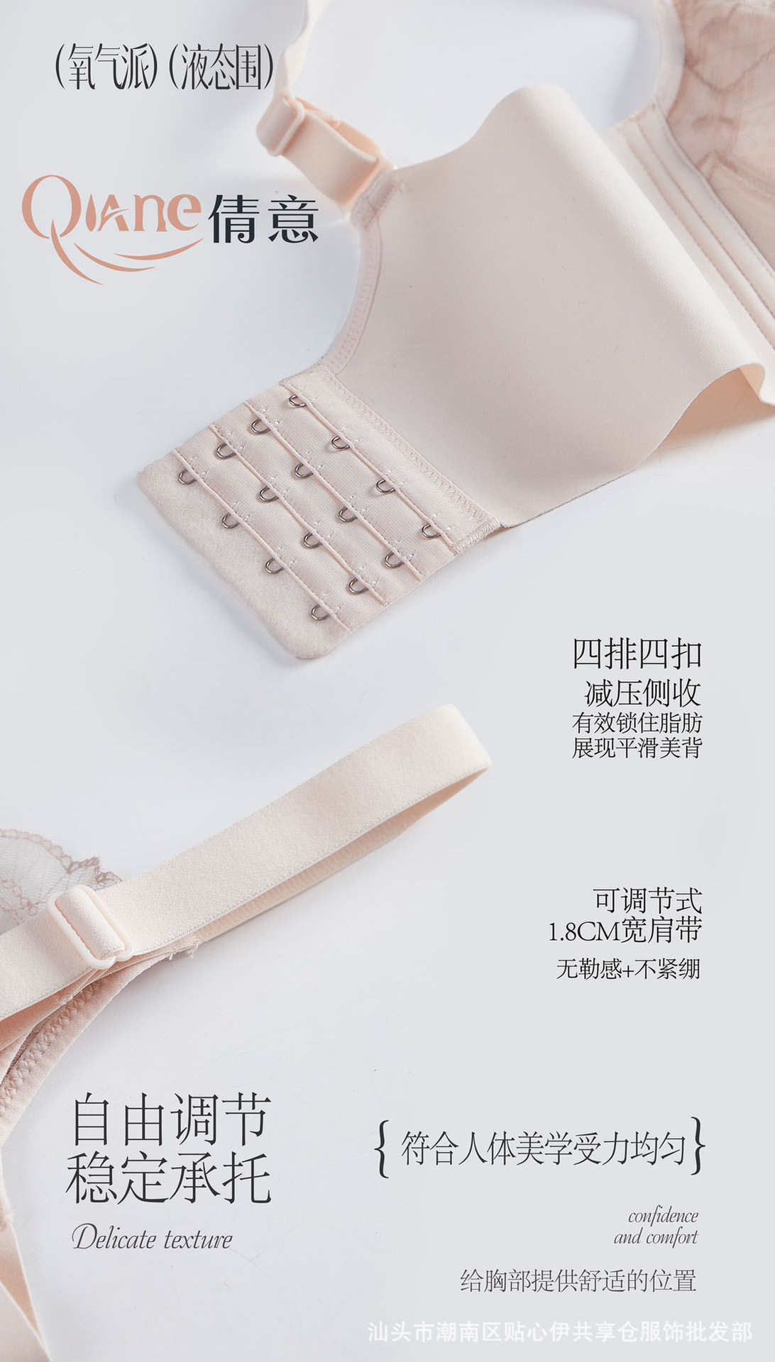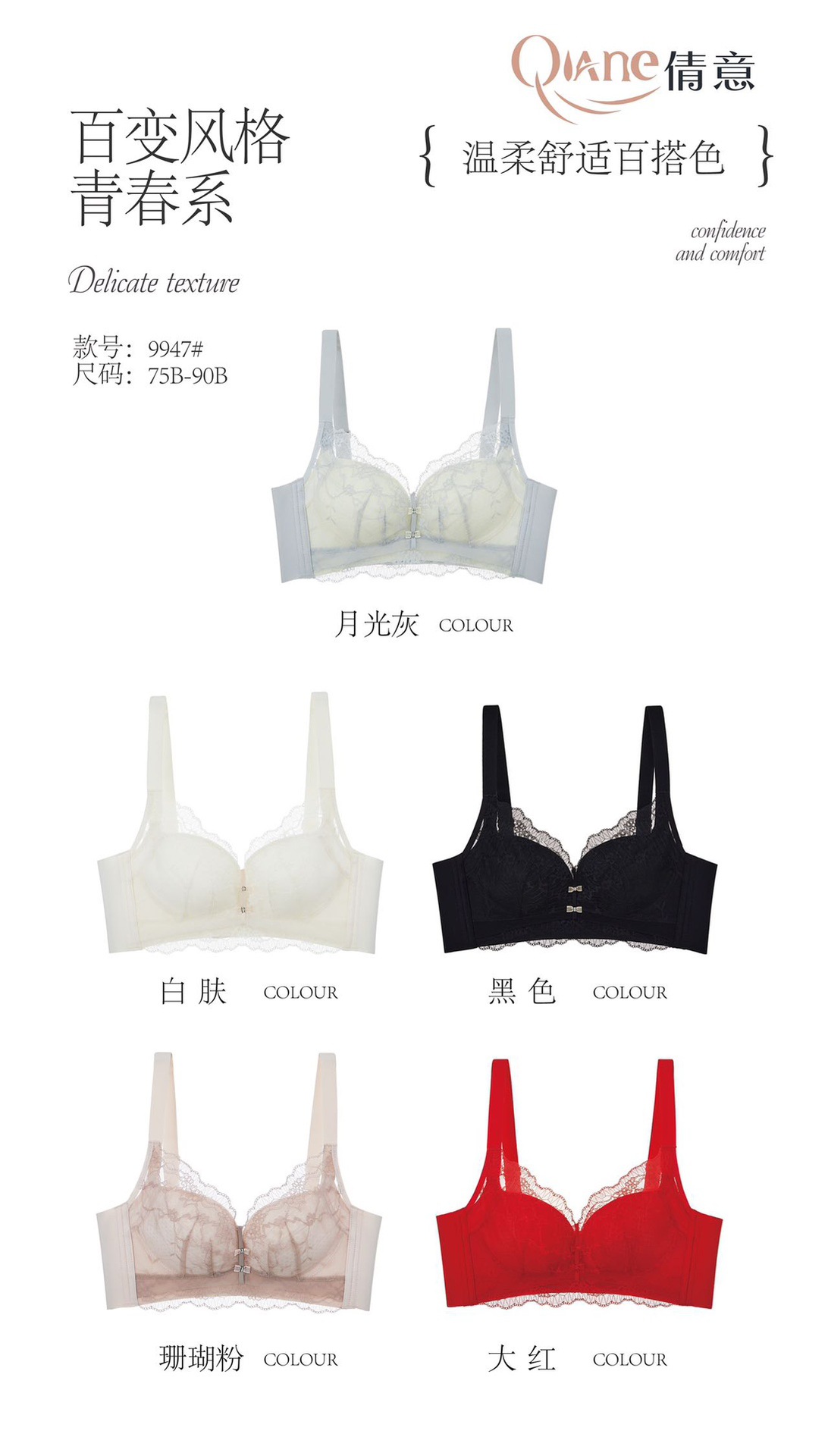 Qianyi 속옷 9947 경량 통기성 샌드위치 종이 B 컵 푸시 업 처짐 방지 조정 가능한 브래지어