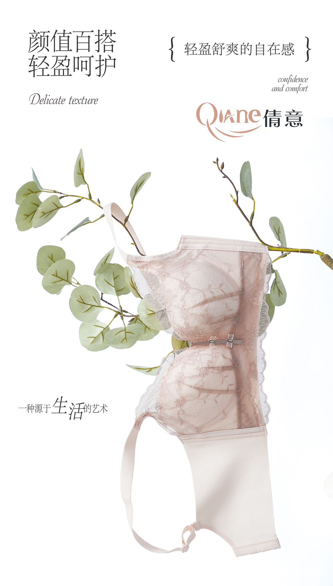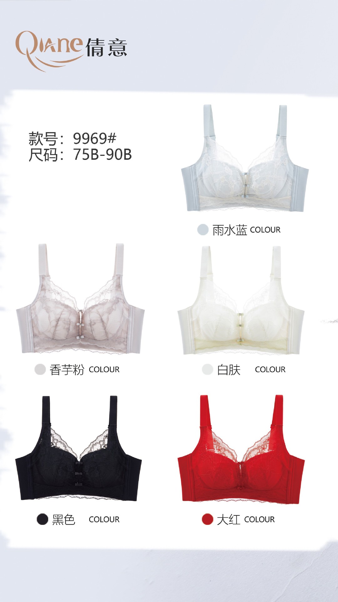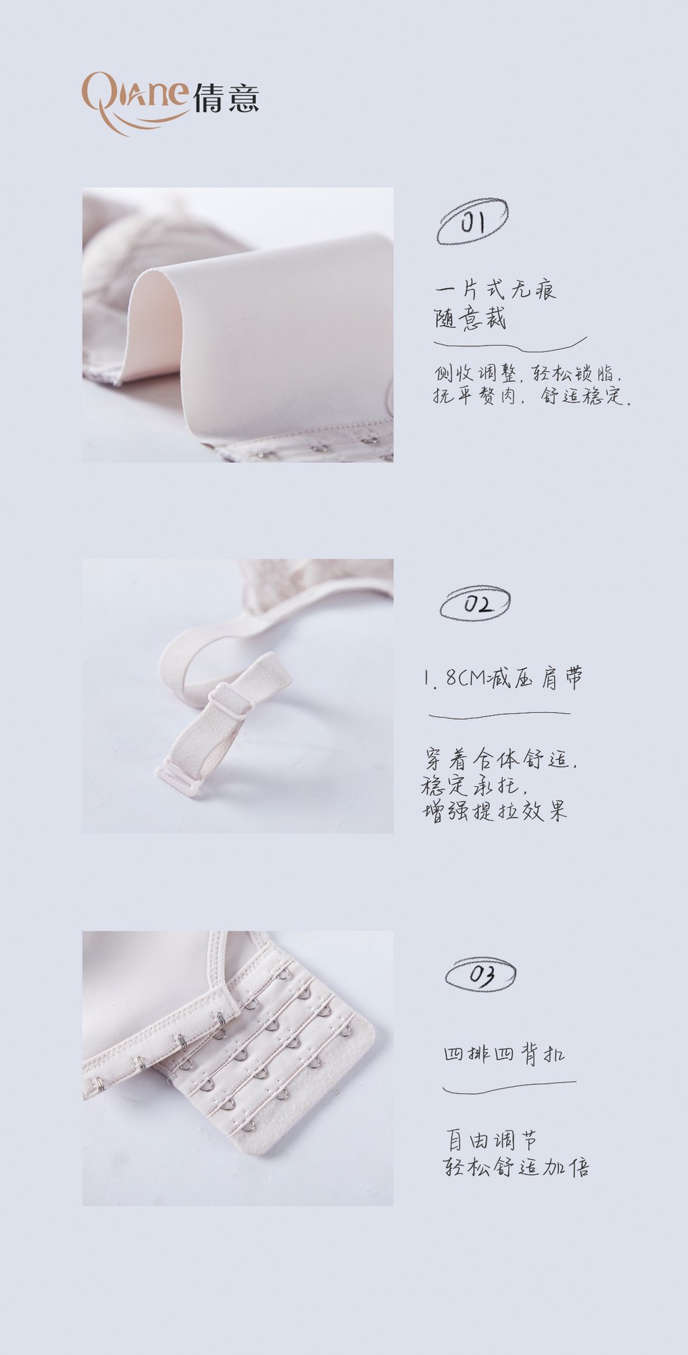 Qianyi 속옷 9947 경량 통기성 샌드위치 종이 B 컵 푸시 업 처짐 방지 조정 가능한 브래지어