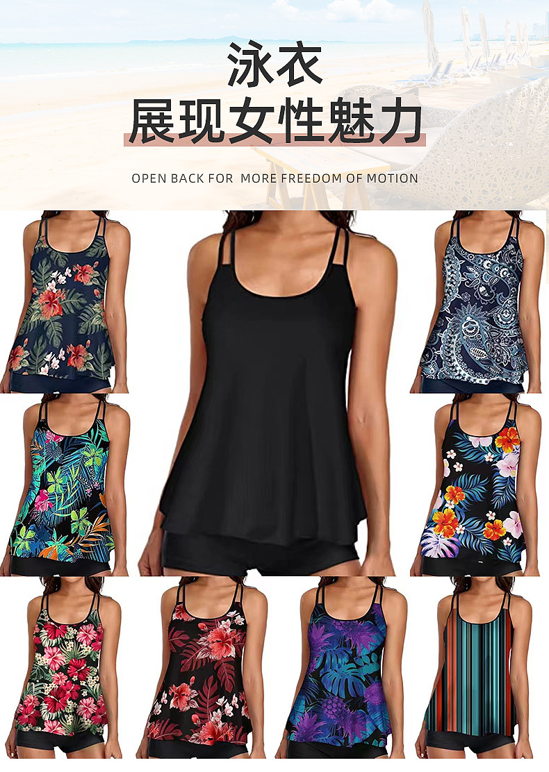 유럽 및 미국 스타일 수영복, 온천용 분리형 수영복, 해변용 자외선 차단 수영 스커트, 아마존 해외 무역 여성용 여름 스포츠 스타일 세트스토어 가기