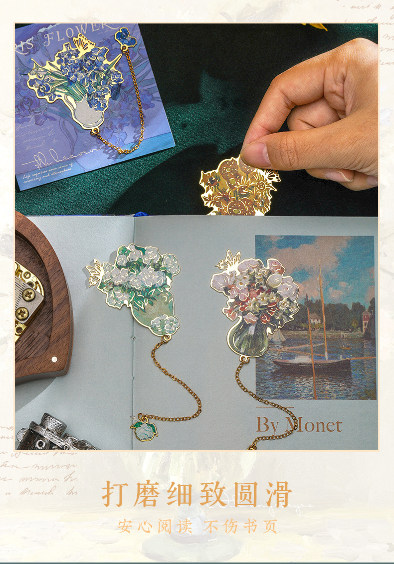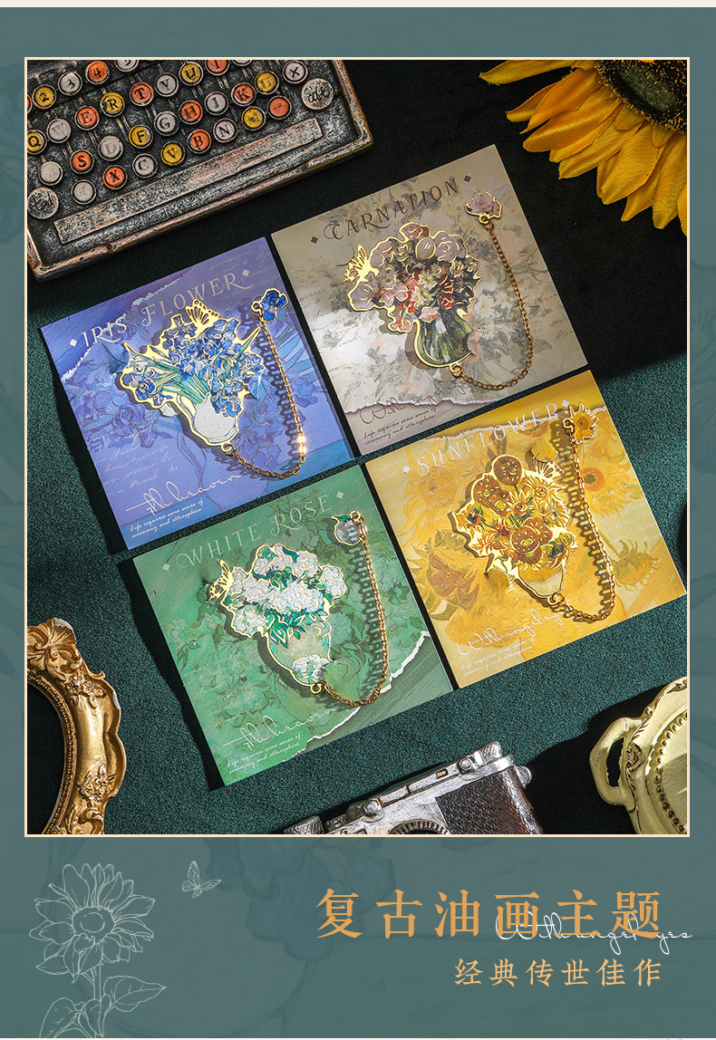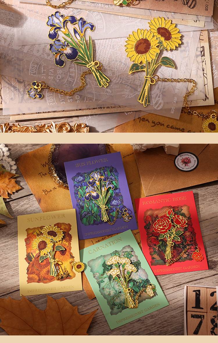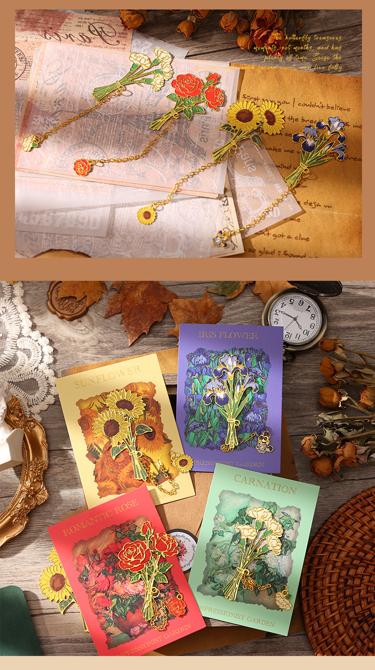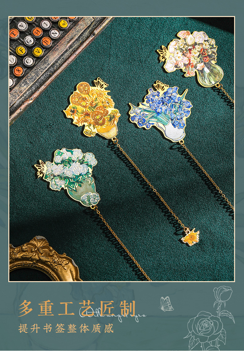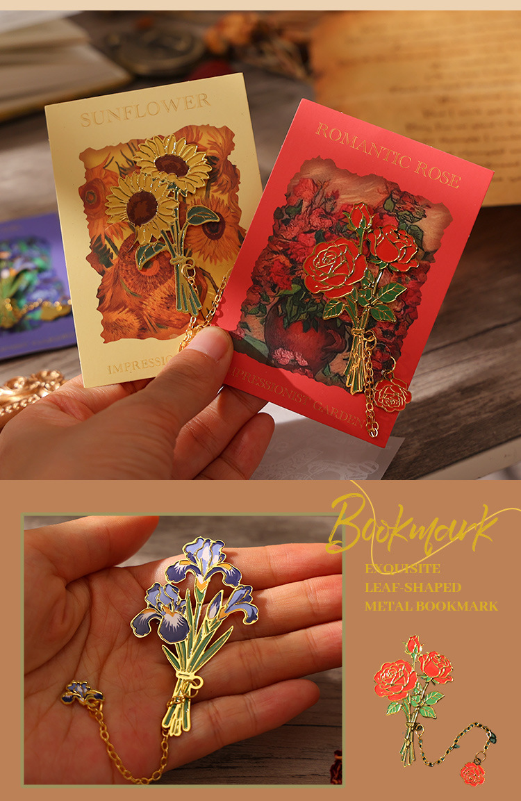 레트로 반 고흐 금속 책갈피, 조용한 꽃의 언어, 심플하고 고급스러운 문학적 스타일의 책갈피, 학생과 선생님을 위한 선물
