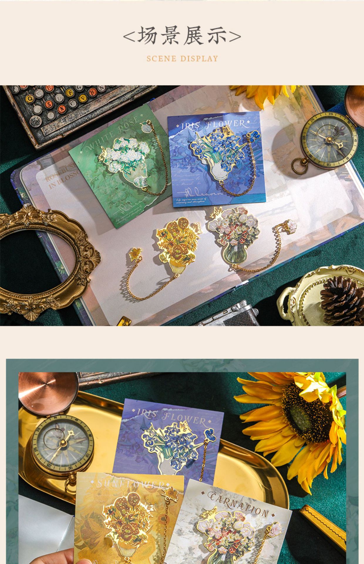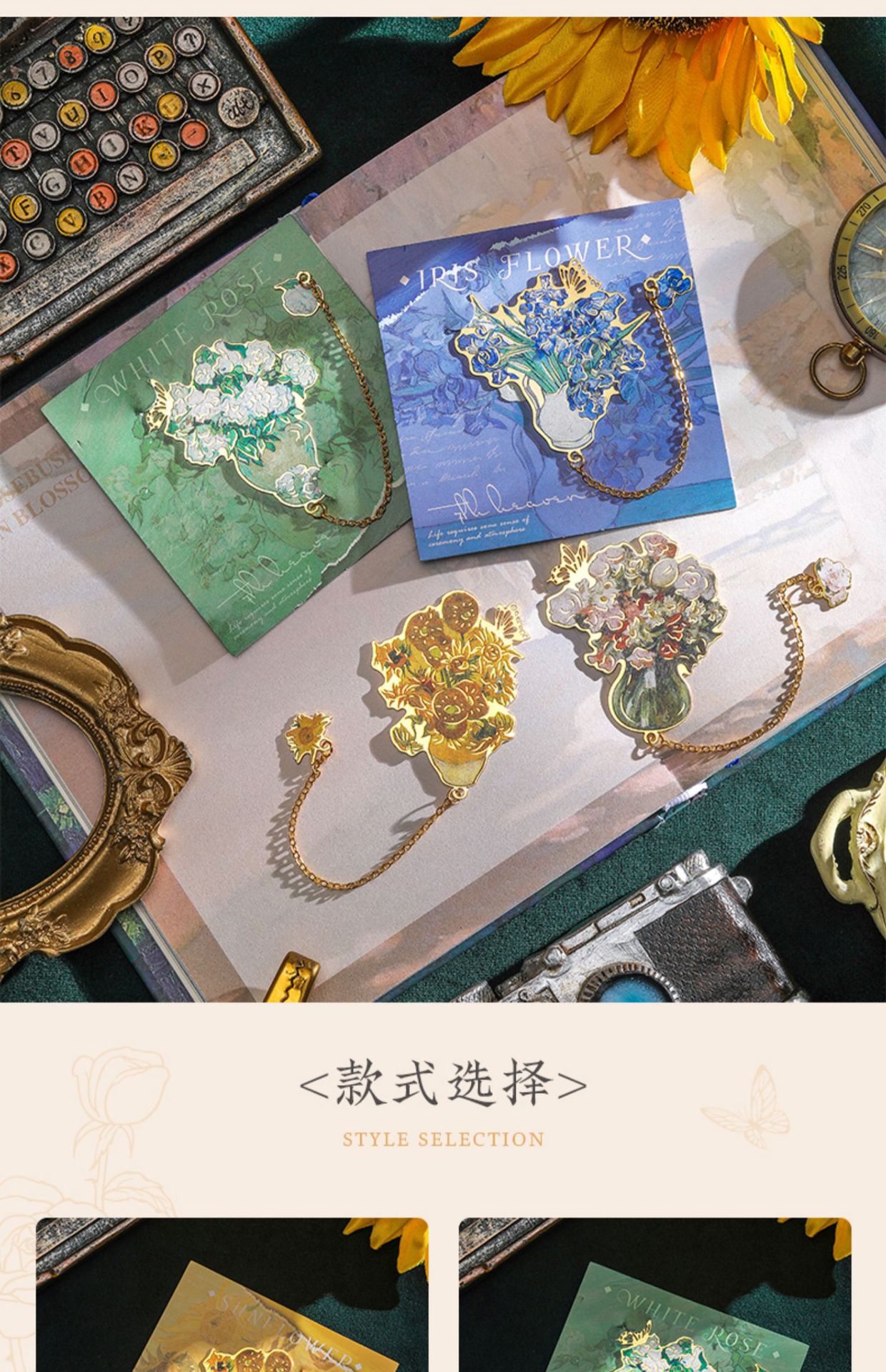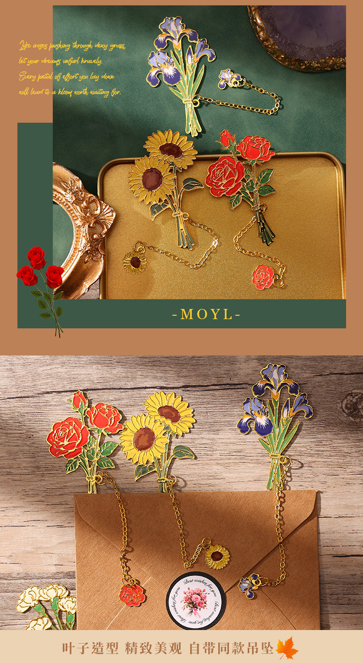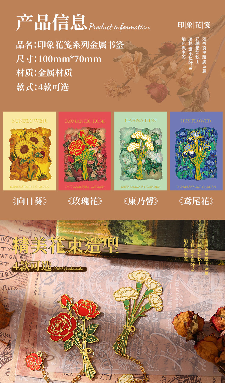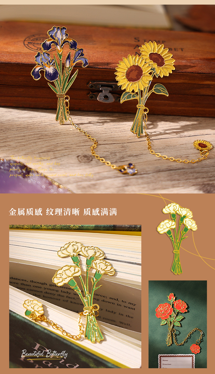 레트로 반 고흐 금속 책갈피, 조용한 꽃의 언어, 심플하고 고급스러운 문학적 스타일의 책갈피, 학생과 선생님을 위한 선물