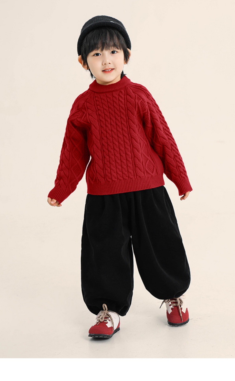 창궈 의류 남아용 겨울 스웨터, 어린이용 두꺼운 축제용 빨간색 니트 스웨터, 중소형 어린이용 새해맞이 의상