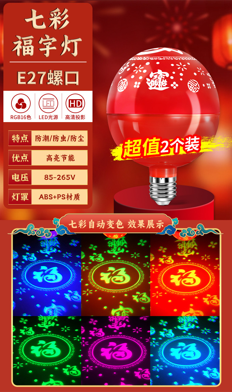 • 2팩 - "Fu"라는 단어가 적힌 축제용 다채로운 램프