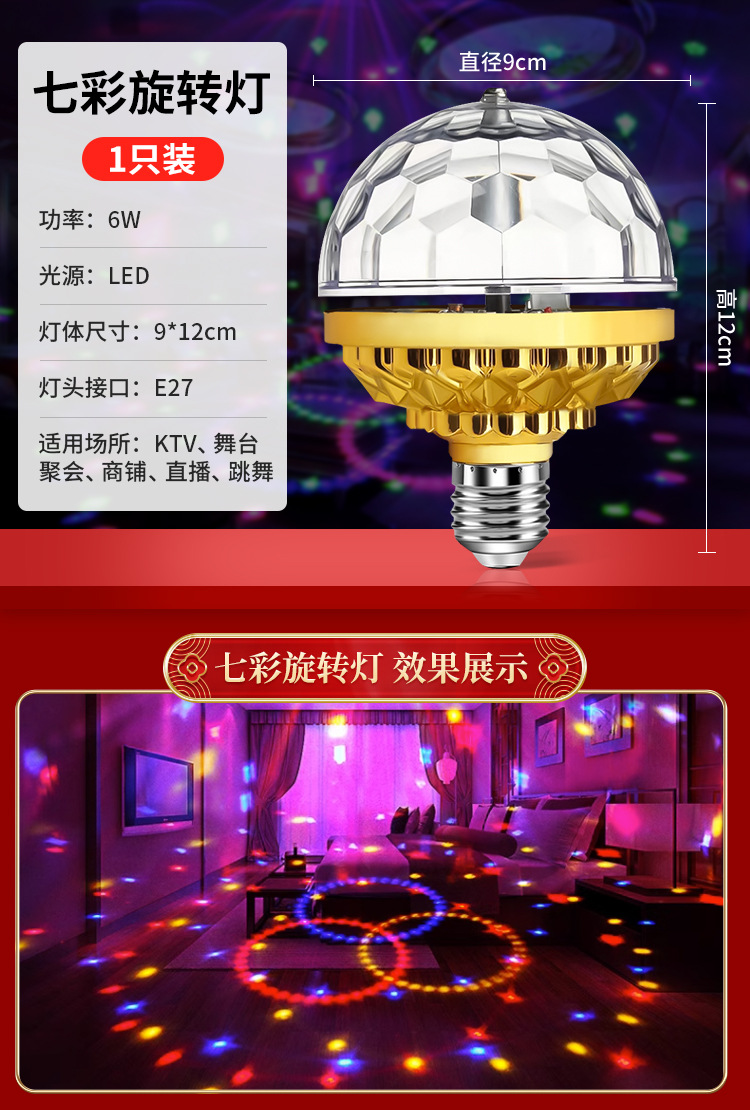 • 다이아몬드 매직볼 전구 [컬러풀 컬러 체인지 +180°자동 회전】