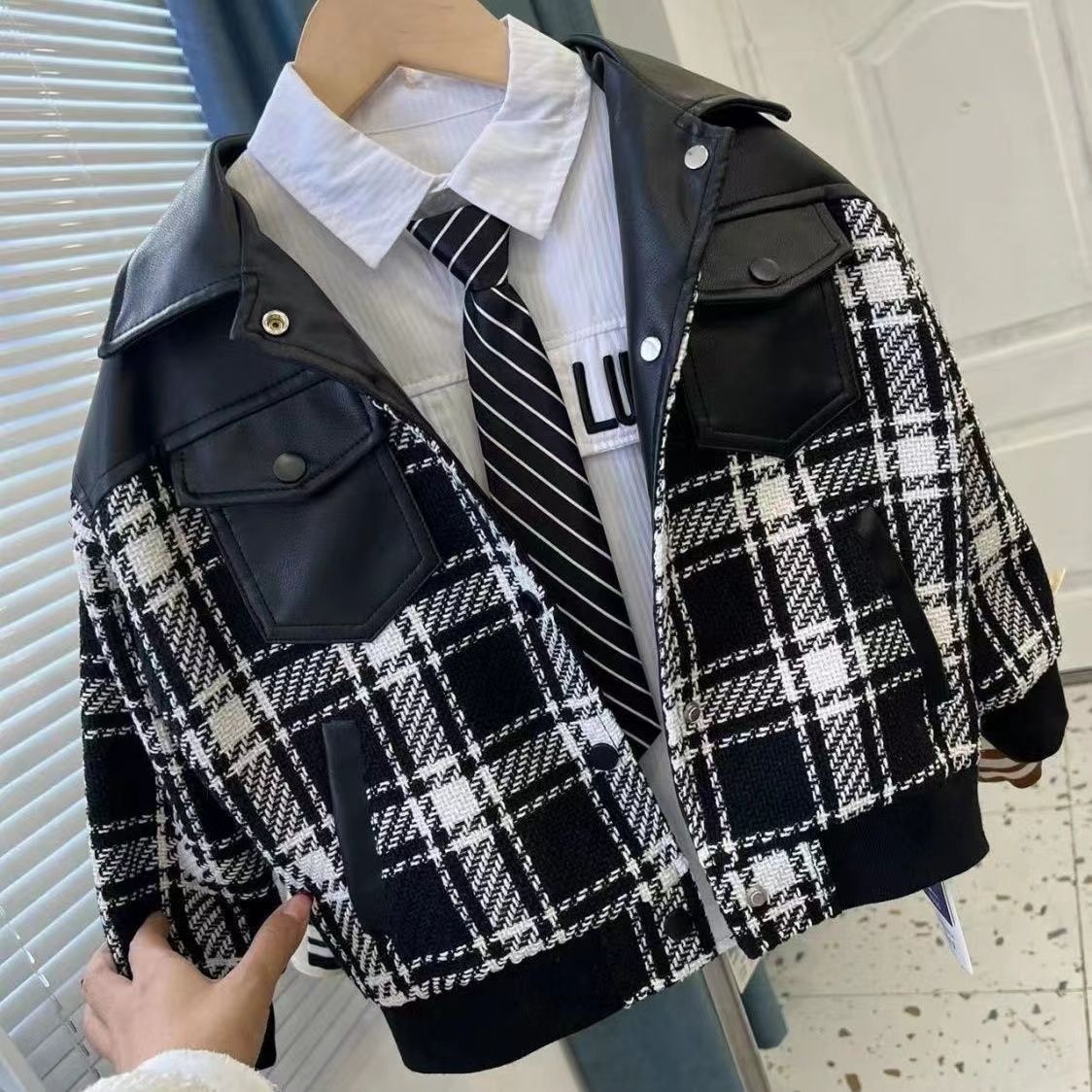 남녀 아동용 짧은 슬림핏 가죽 재킷 2024 봄 가을 신상 여아 패션 스타일리시 한국판 재킷스토어 가기