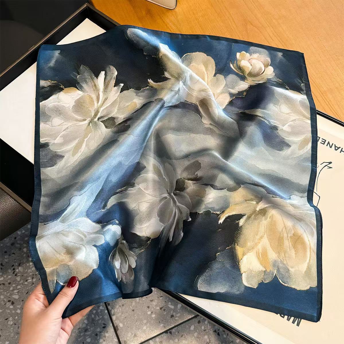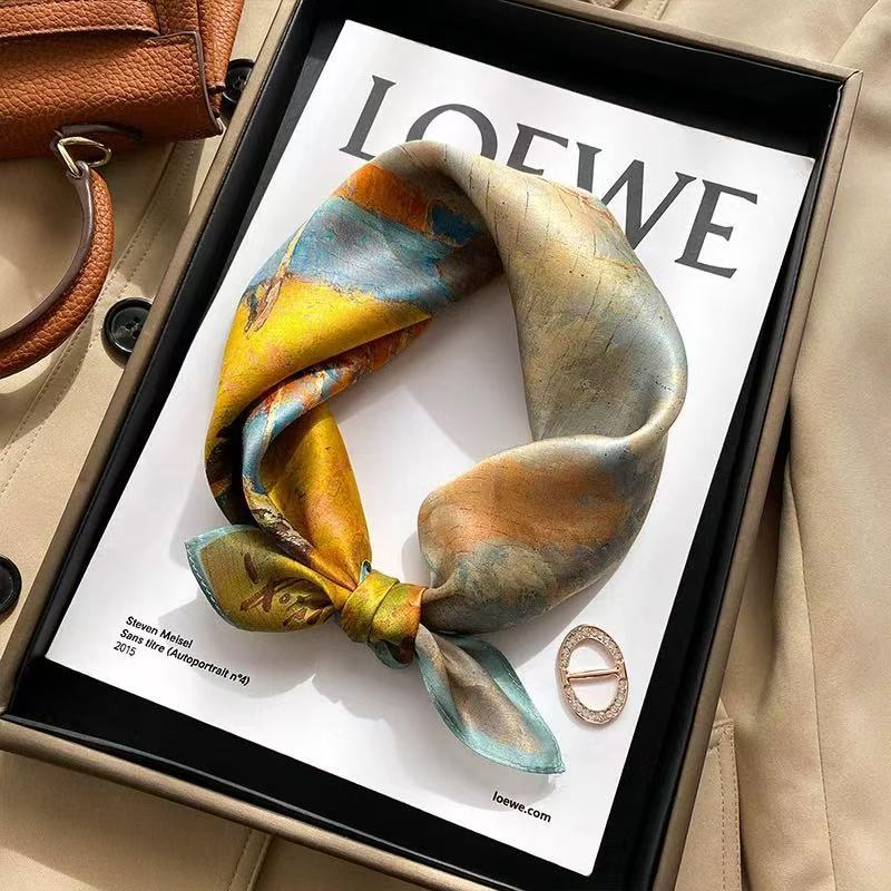 공장 도매 봄 실크 뽕나무 실크 작은 사각형 타월 외국 스타일 패션 조커 봄과 가을 얇은 스카프 여성