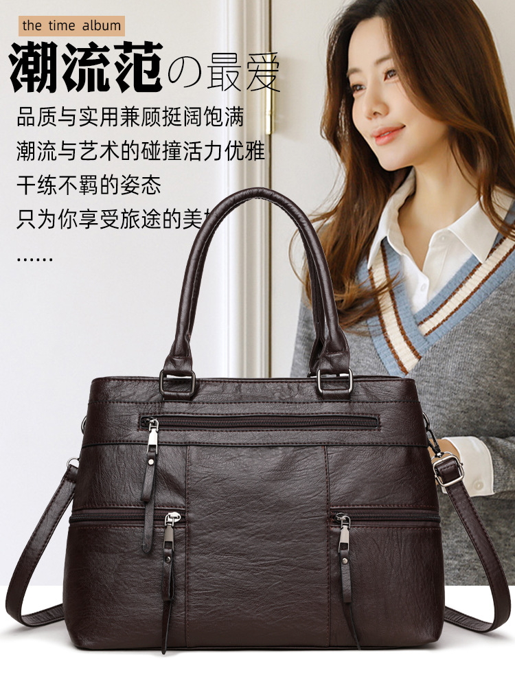 국경 간 어머니 가방 여성의 2024 새로운 유럽과 미국의 복고풍 휴대용 토트 백 간단한 패션 어깨 메신저 가방 도매스토어 가기