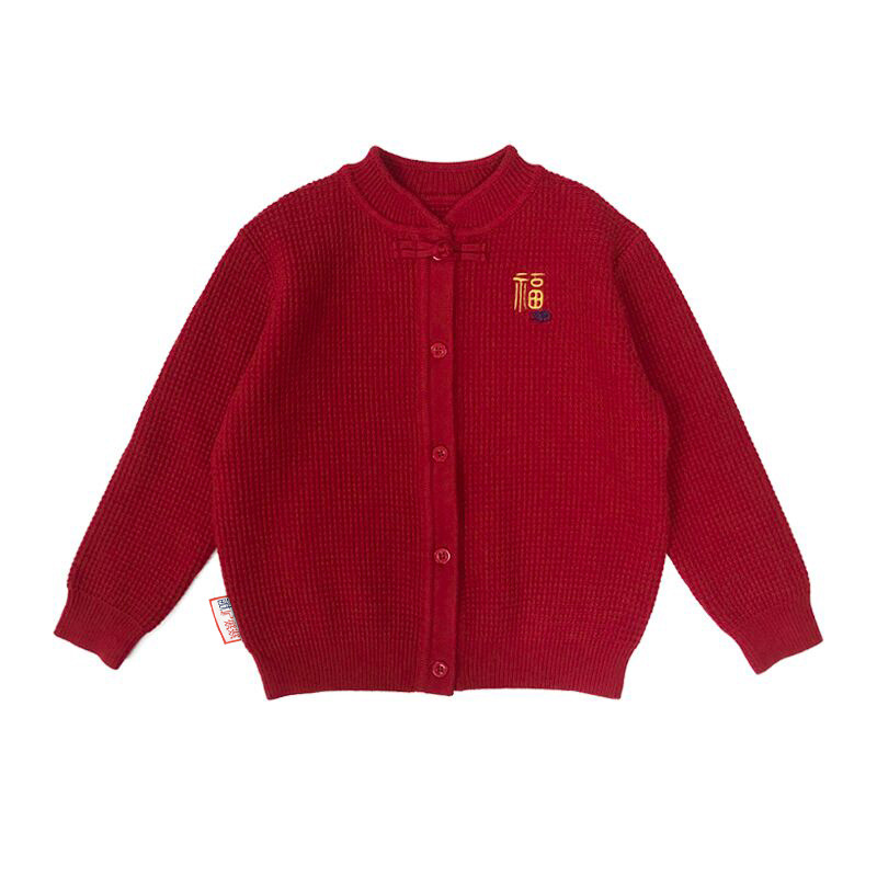 마오양 아동복 2025 겨울 새로운 중국 스타일 버클 스웨터 자수 카디건 레드 스웨터스토어 가기