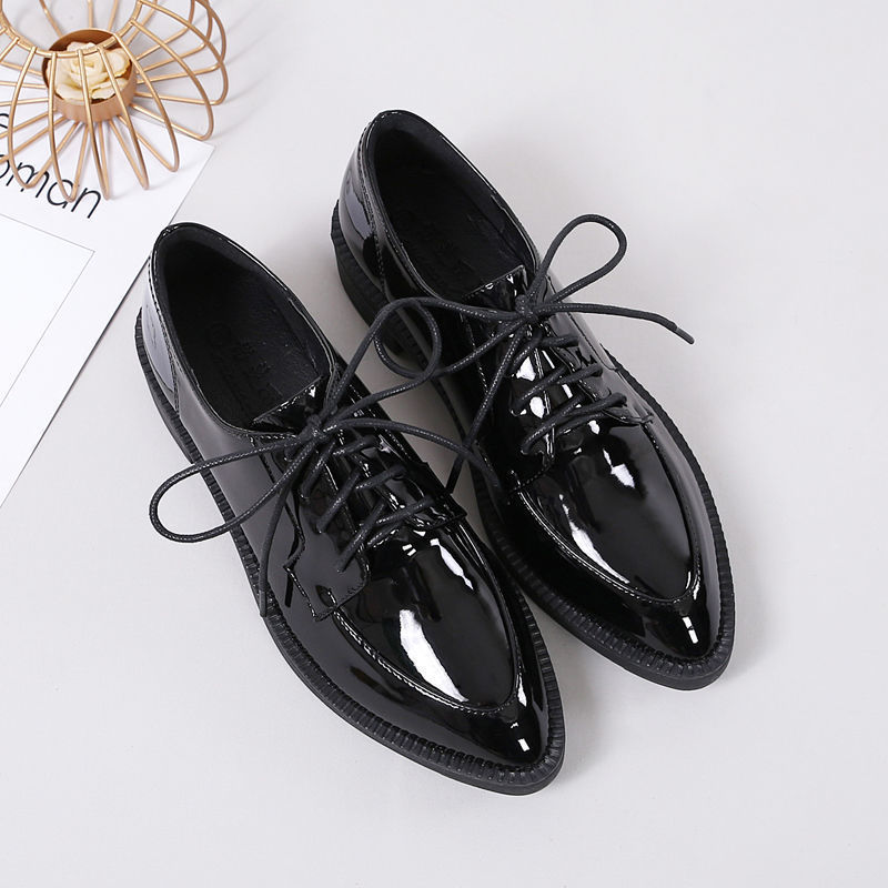 정품 가죽 특허 가죽 신발 여성 영국 레이스 업 소프트 리얼 어린이 2024 새로운 가을과 겨울 포인팅 두꺼운 힐 올 매치 싱글 레이어 신발스토어 가기