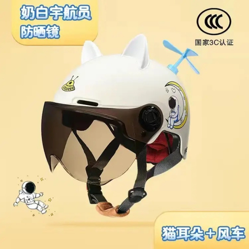 GB 인증 어린이 헬멧 여름 전기 자동차 절반 헬멧 사계절 유니버설 귀여운 오토바이 배터리 자동차 안전 헬멧