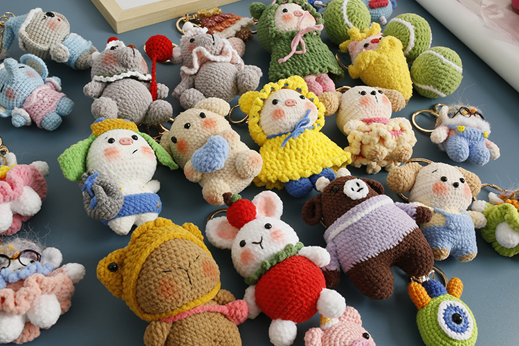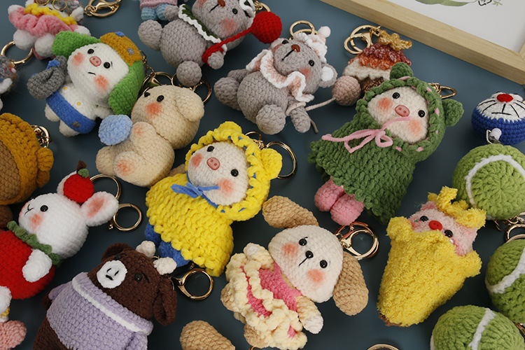 새로운 수제 니트 인형 완성 된 슈퍼 귀여운 양털 뜨개질 중공업 펜던트 만화 니트 인형 컬렉션
