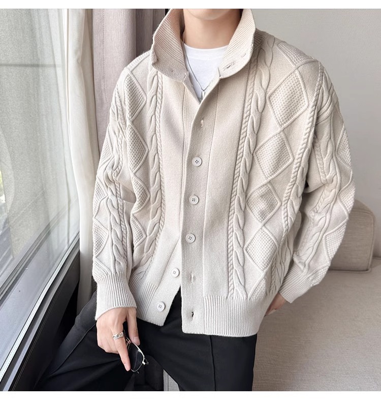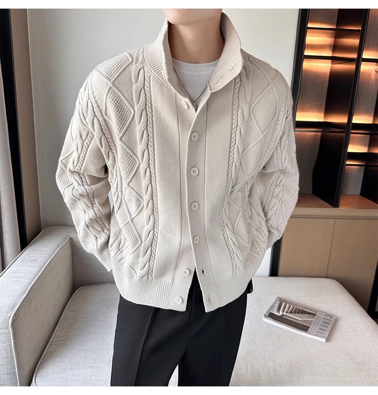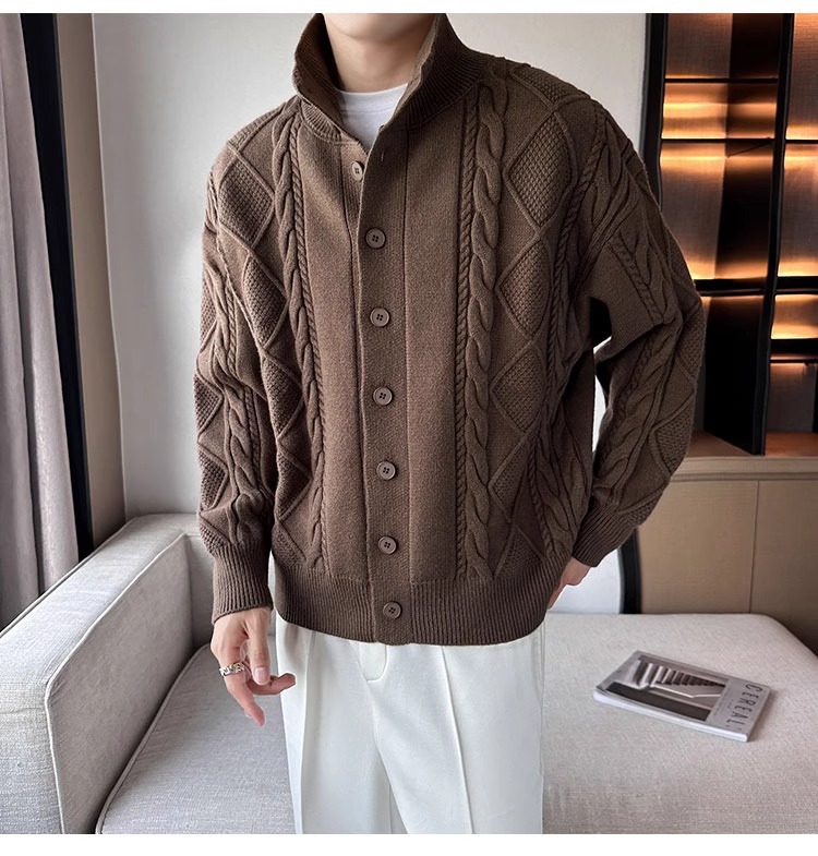 니트 카디건 코트 남자의 가을과 겨울 2024 새로운 두꺼운 겉옷 느슨한 바람 트위스트 스웨터 헤어 세대스토어 가기