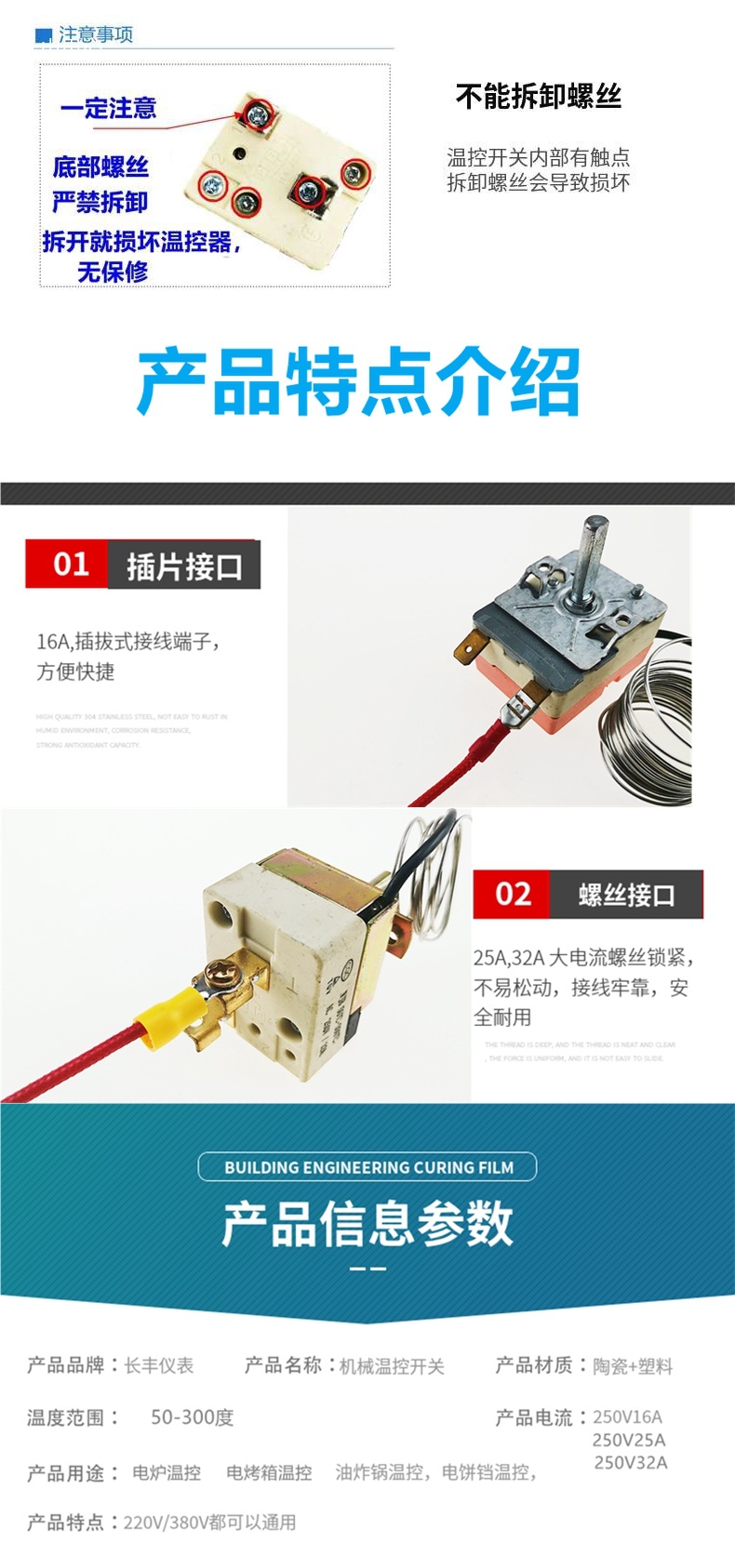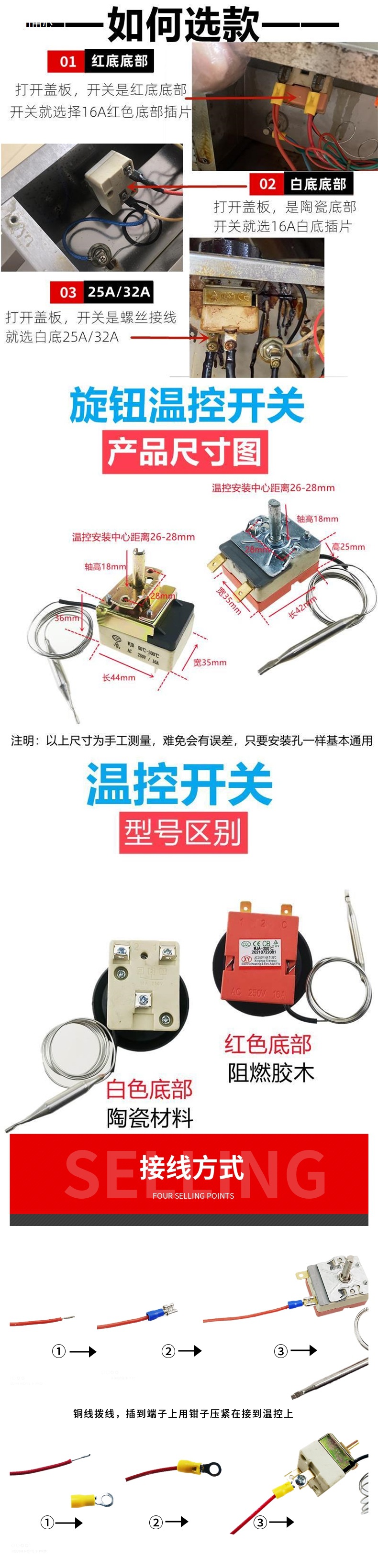 전기 케이크 팬 50-300 도 프라이어 손잡이 온도 제어 스위치 프라이어 전기 오븐 온도 제어를 위한 온도 조절기