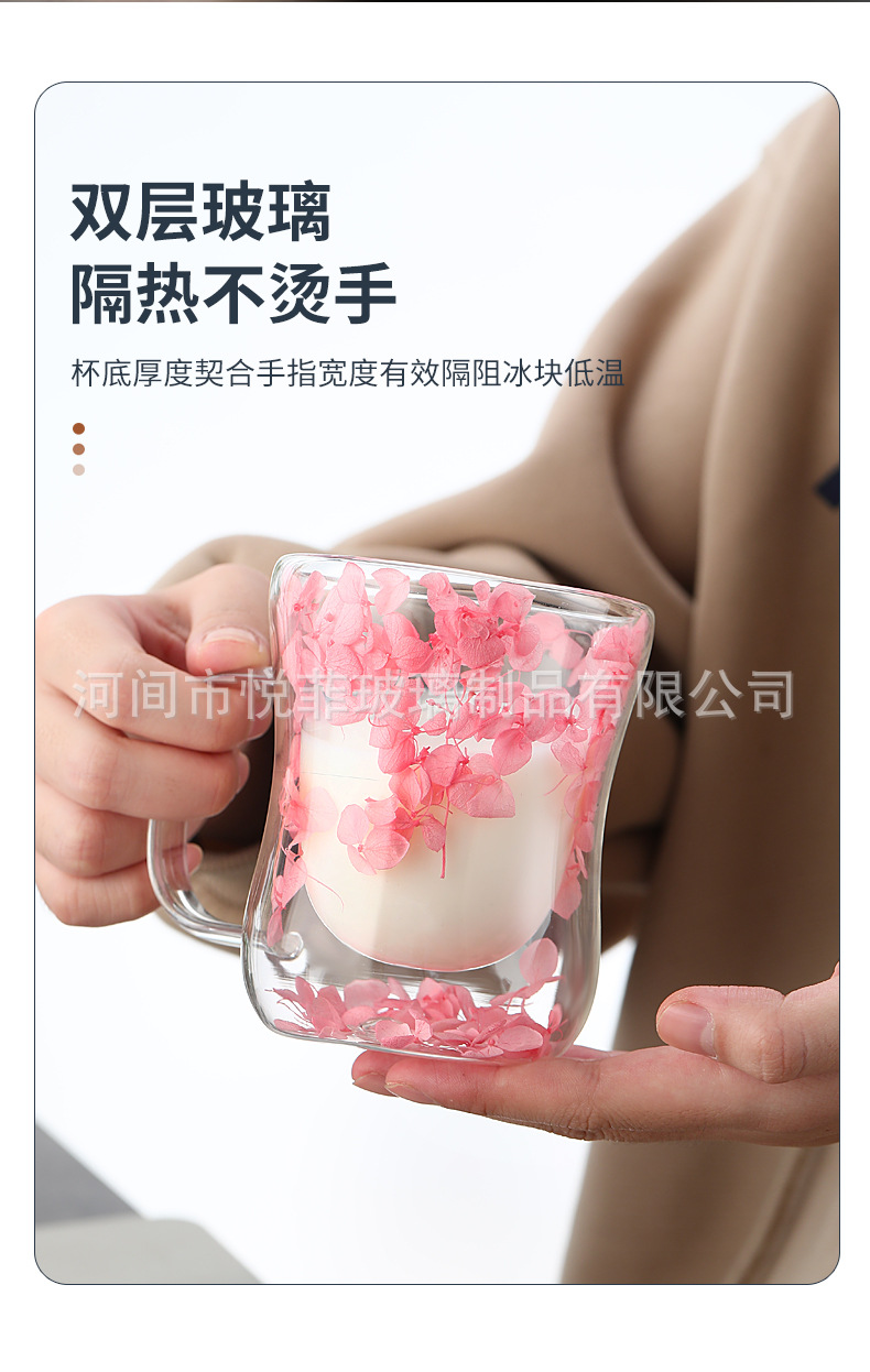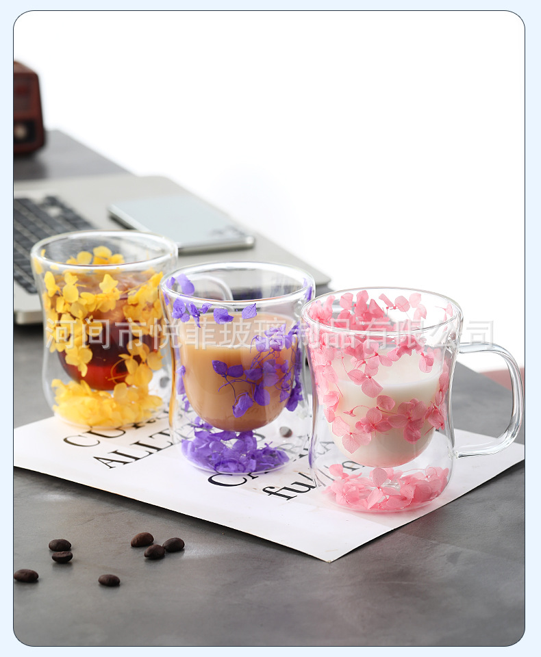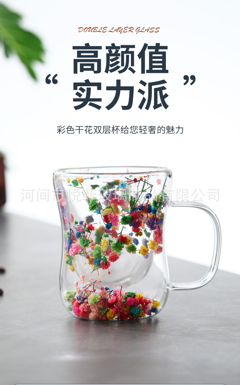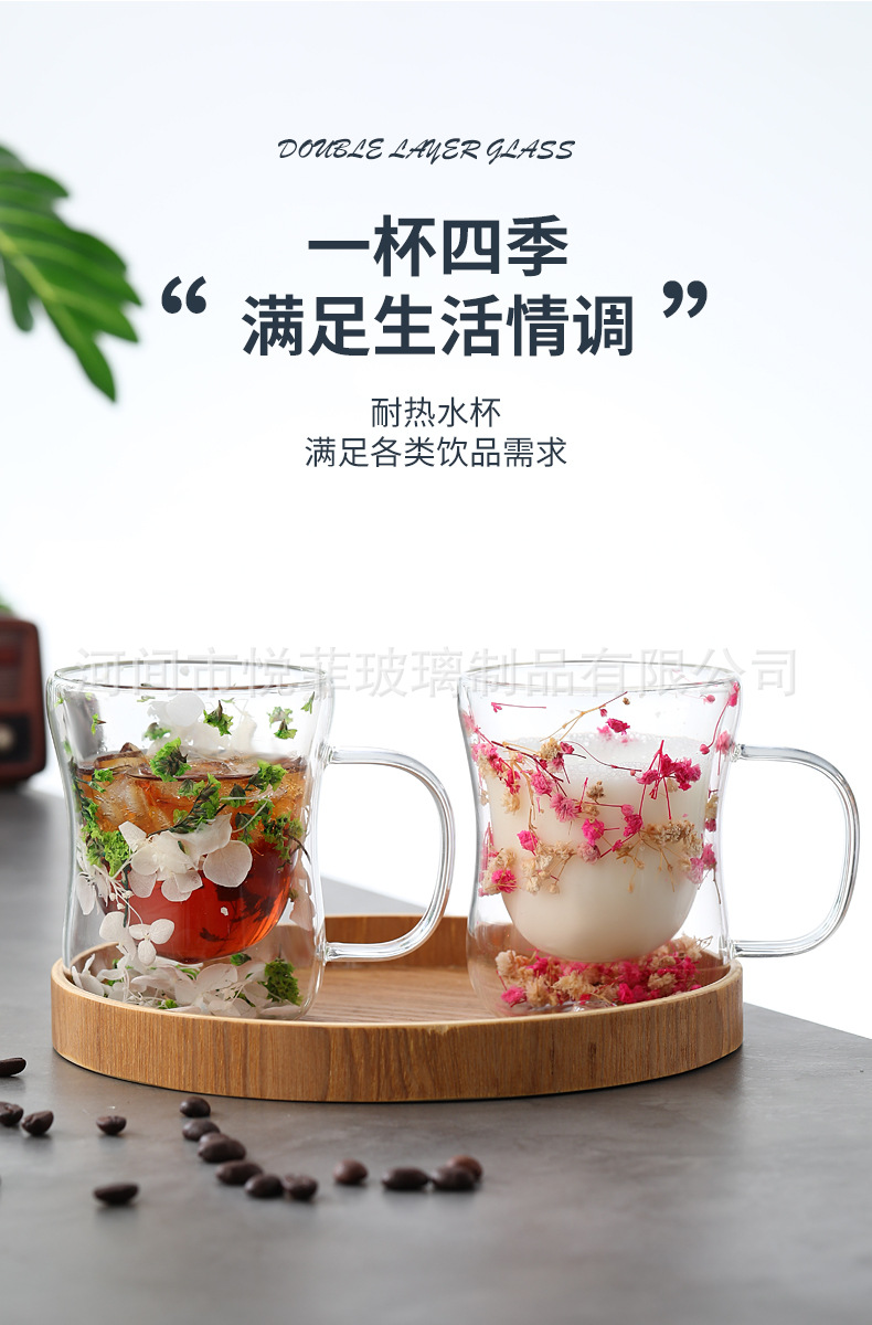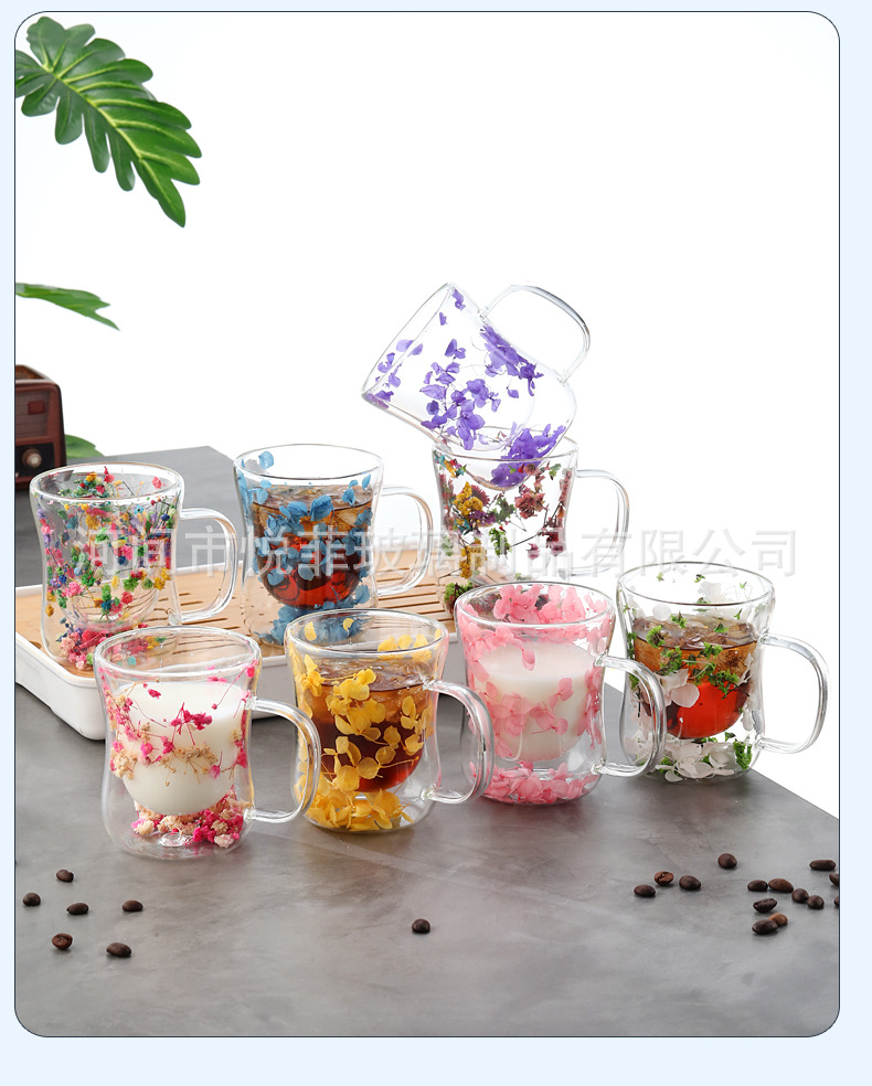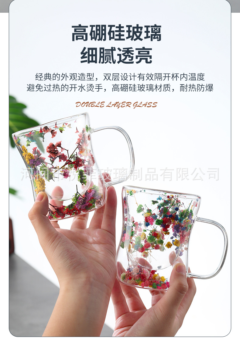 250ml 유리 컵 가구 높은 붕규산 우유 컵 핸들 차 컵 더블 유리 말린 꽃 컵 커피 컵