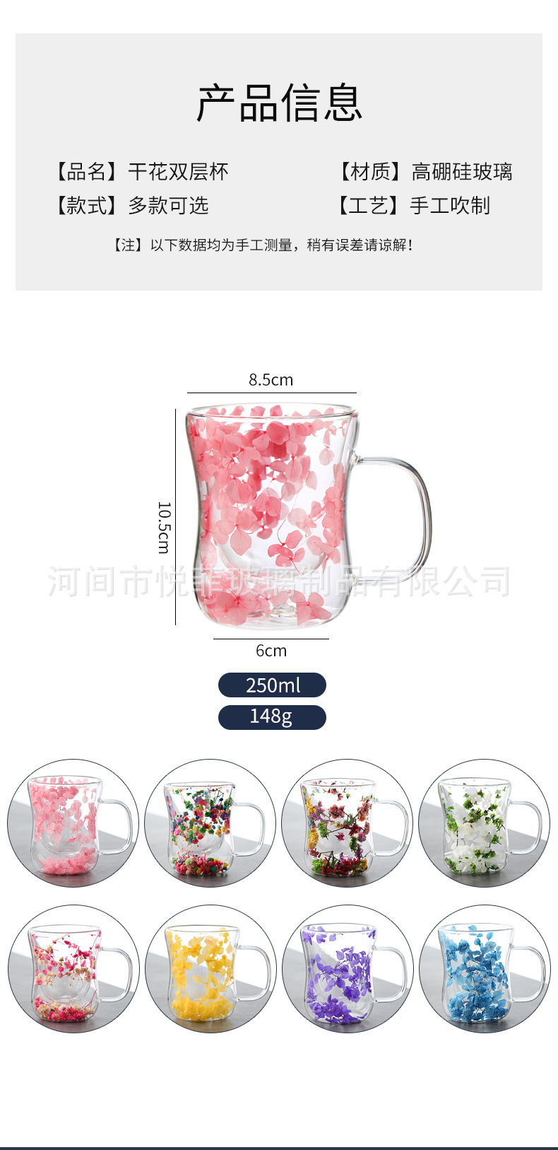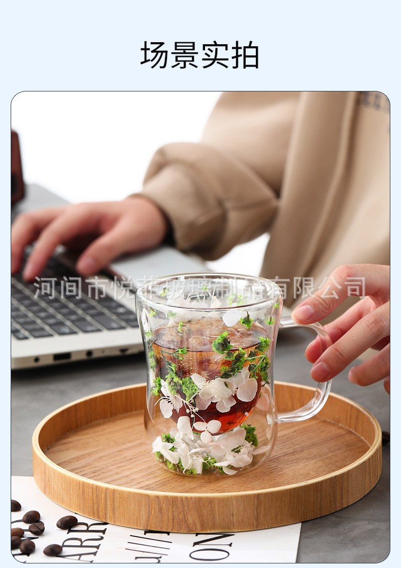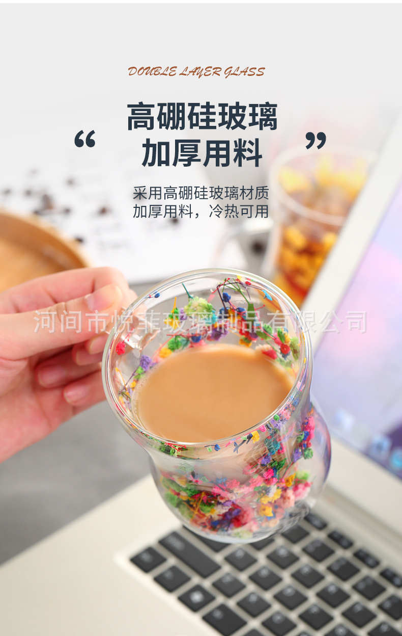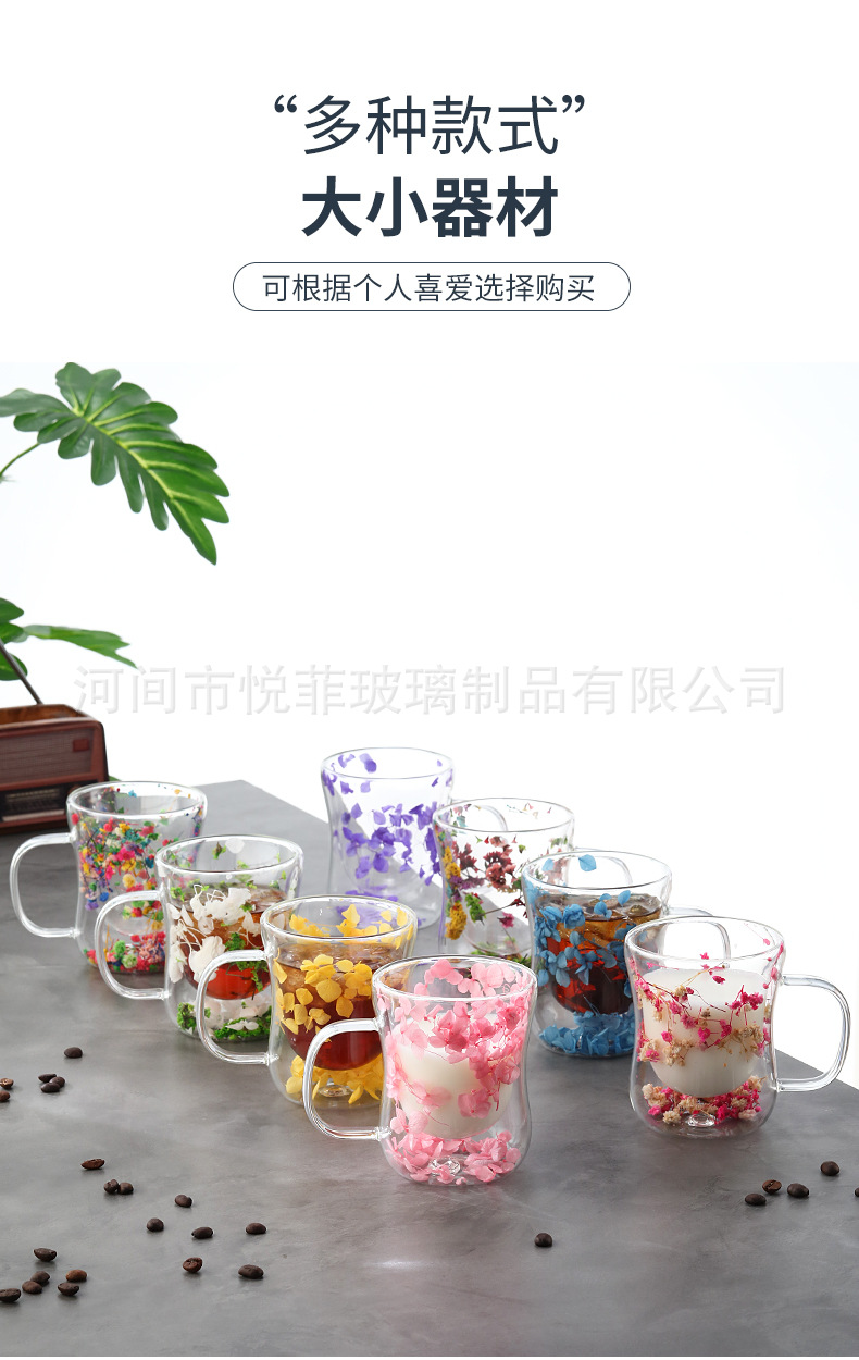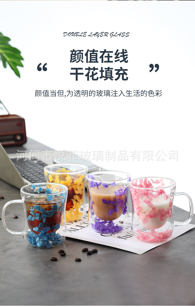 250ml 유리 컵 가구 높은 붕규산 우유 컵 핸들 차 컵 더블 유리 말린 꽃 컵 커피 컵