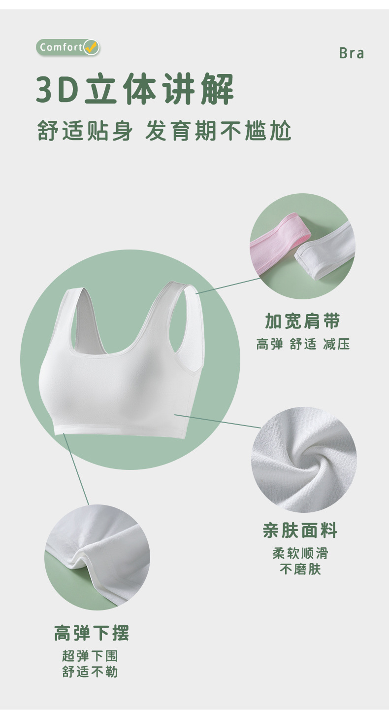 여학생 고정 컵 속옷 중학생 발달 고등학생 12-18 세 코튼 걸스 스트랩리스 가슴 포장스토어 가기
