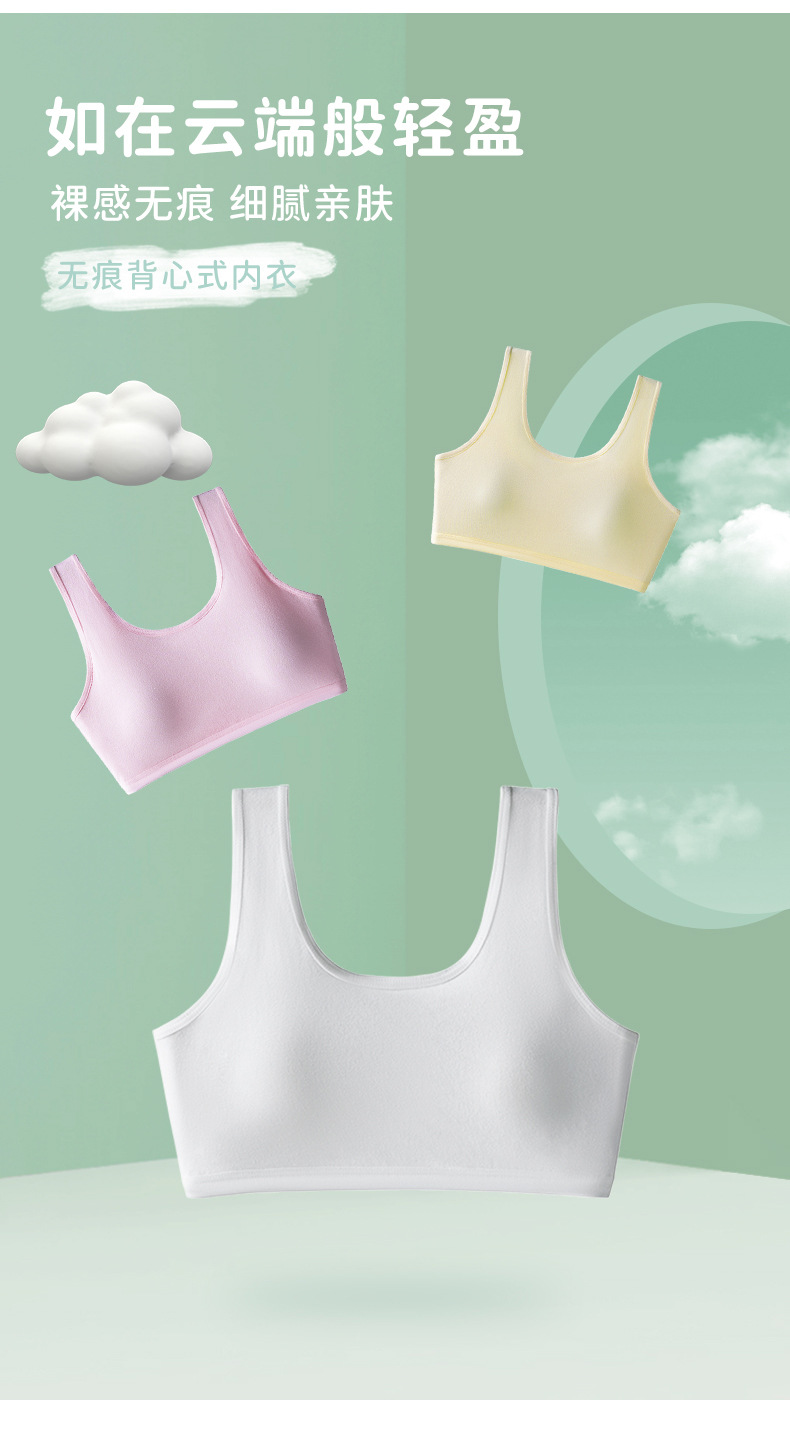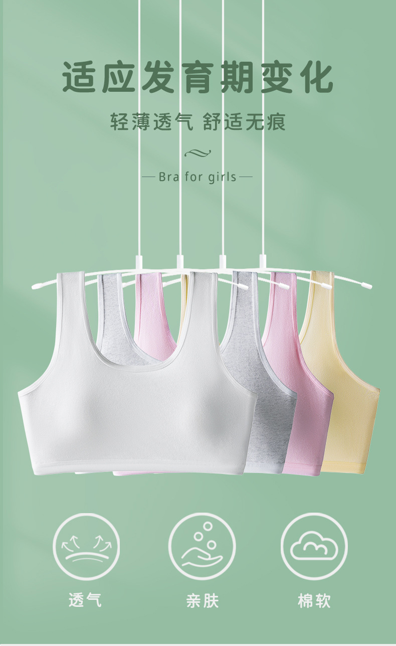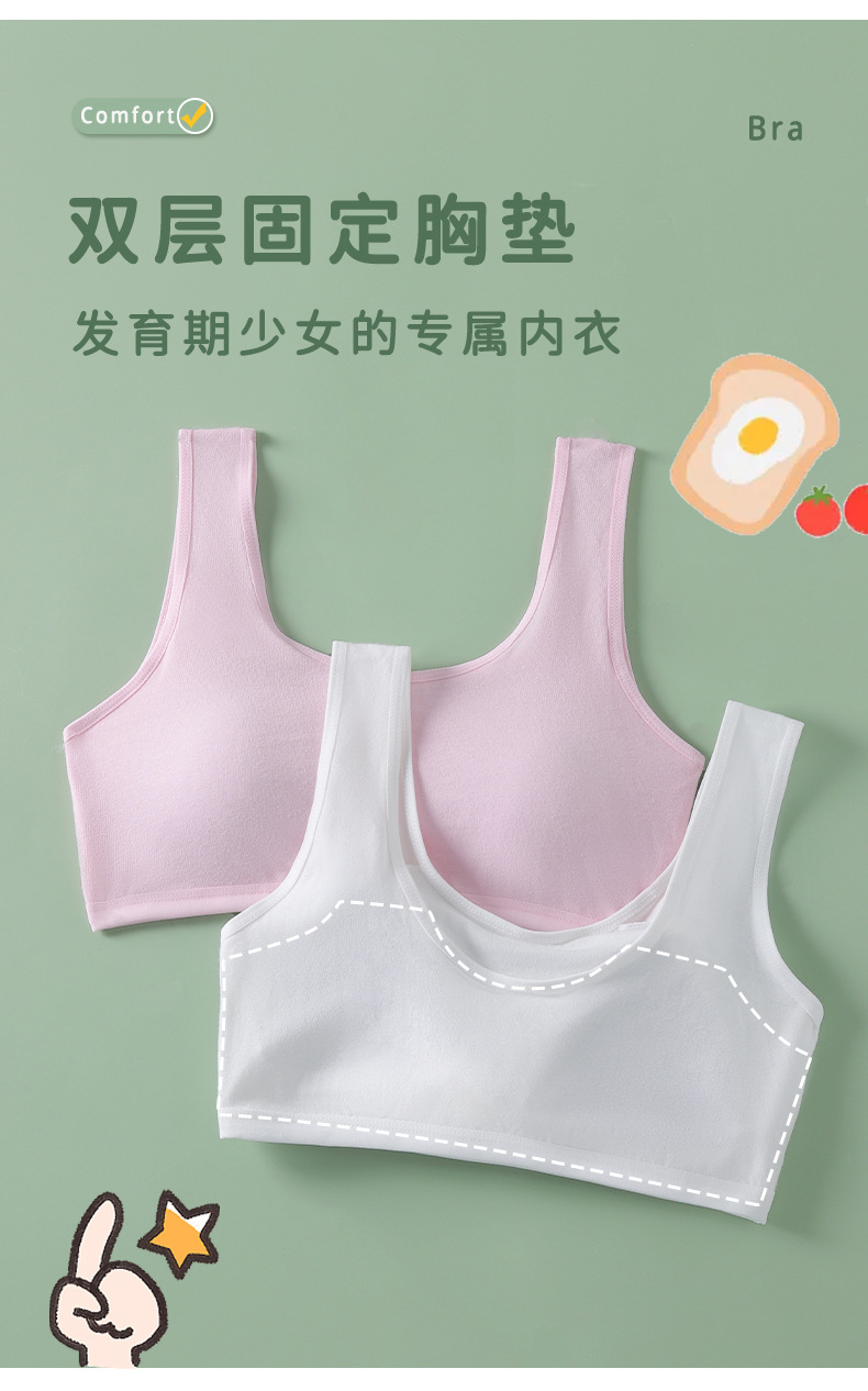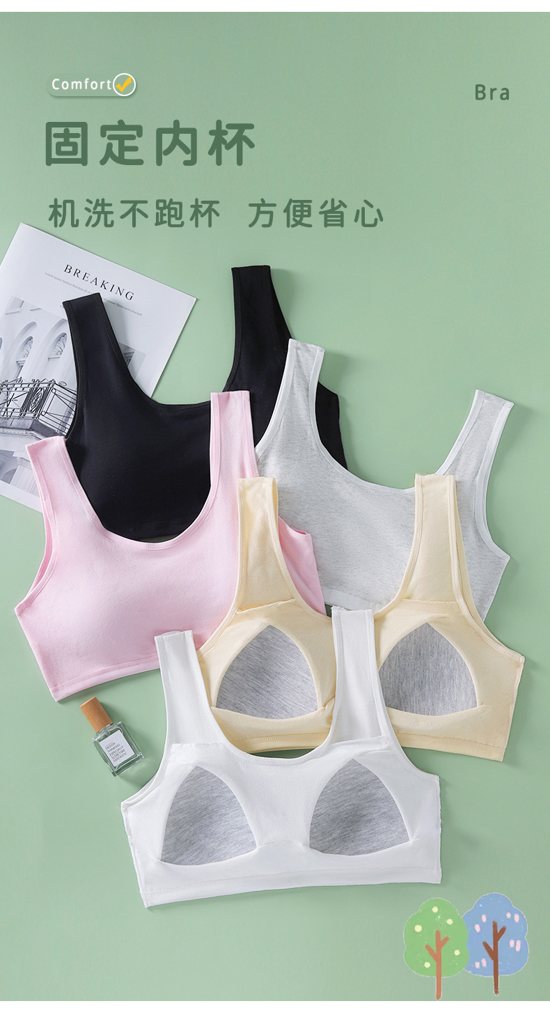 여학생 고정 컵 속옷 중학생 발달 고등학생 12-18 세 코튼 걸스 스트랩리스 가슴 포장