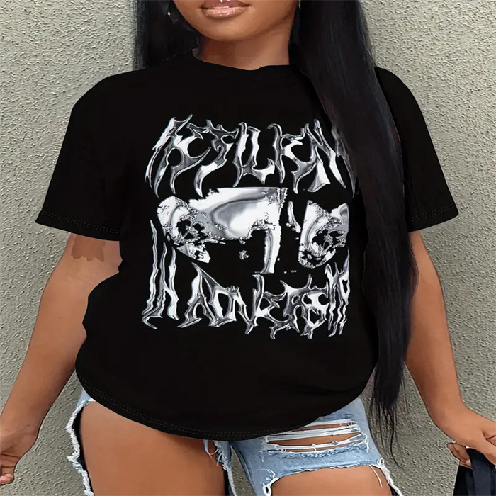크로스보더 유럽 및 미국 아마존 신상 프린트 티셔츠 라운드넥 루즈핏 오버사이즈 반팔 캐주얼 여성 티셔츠 상의