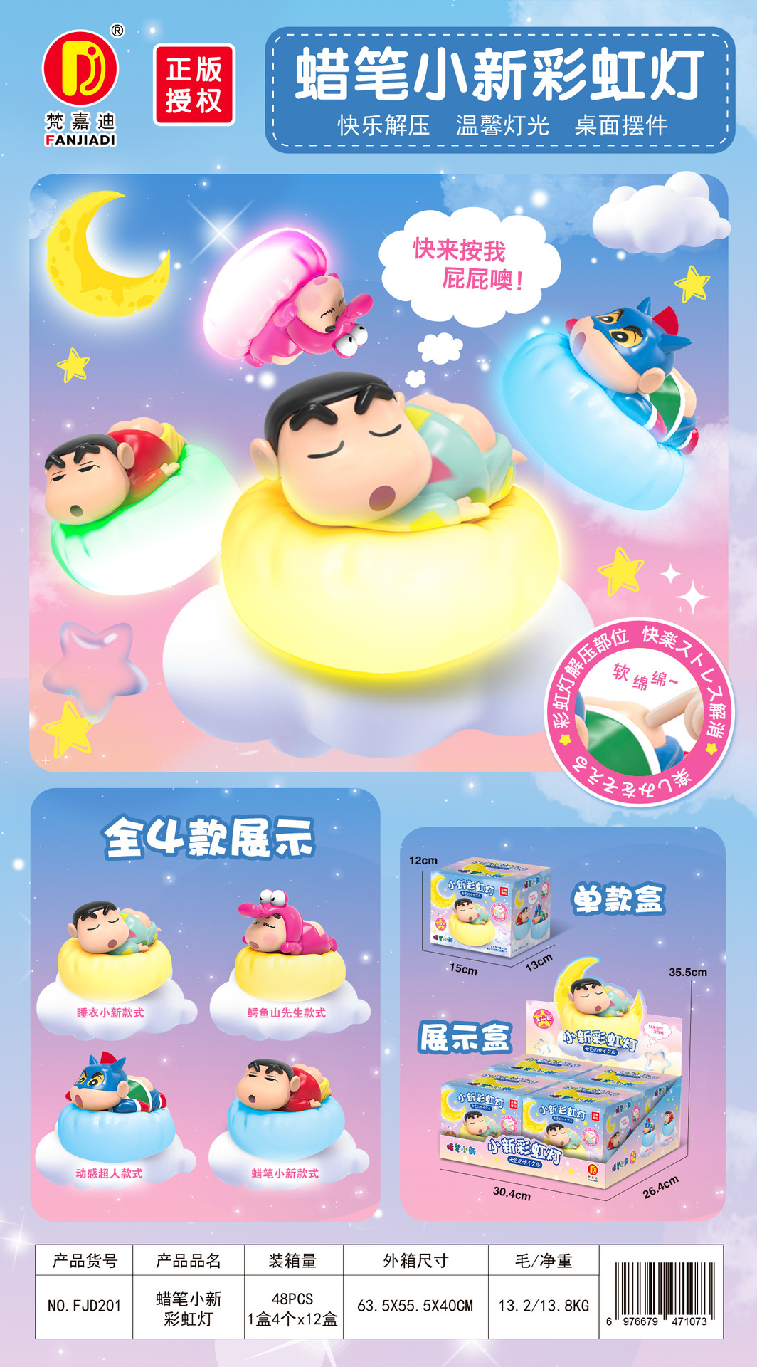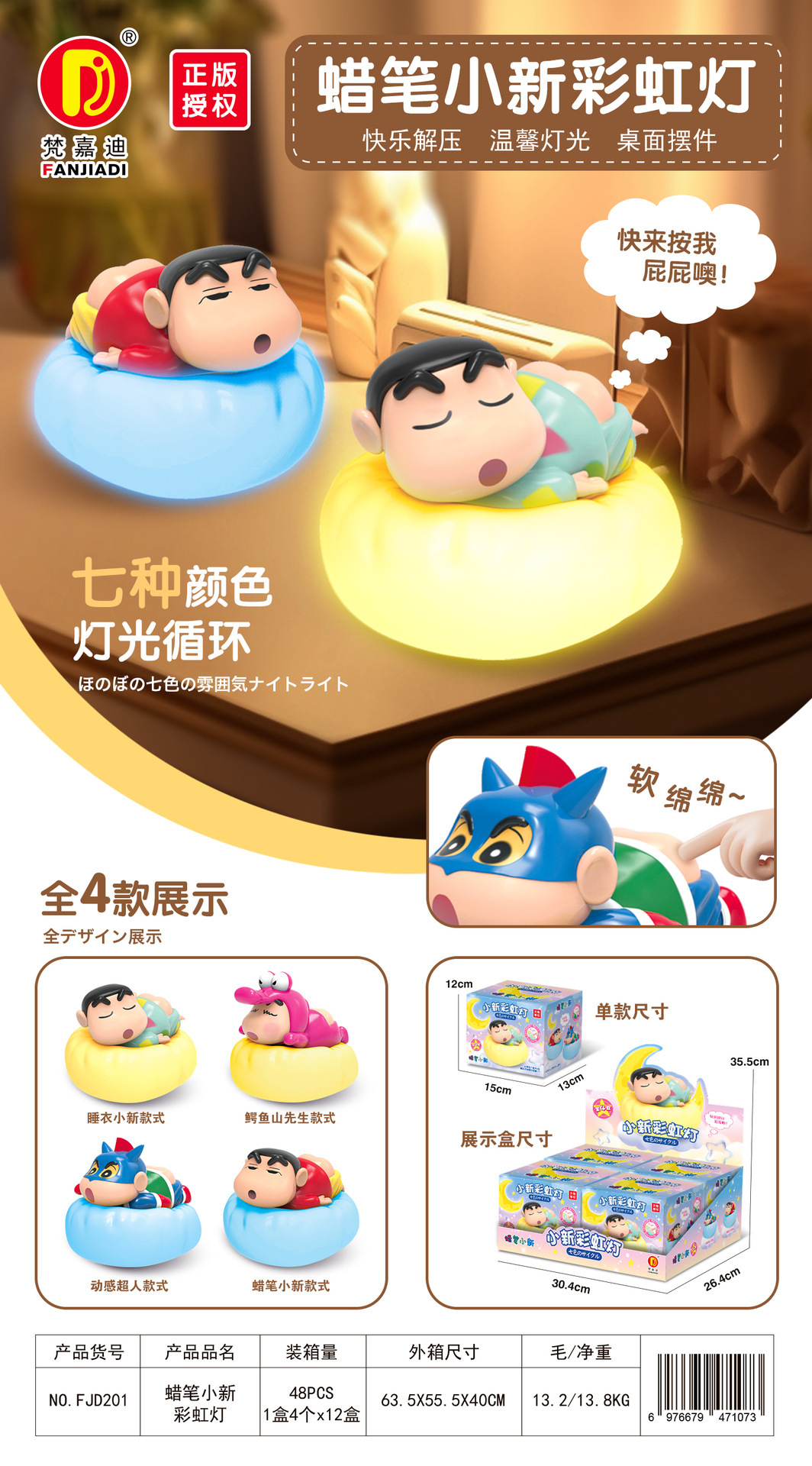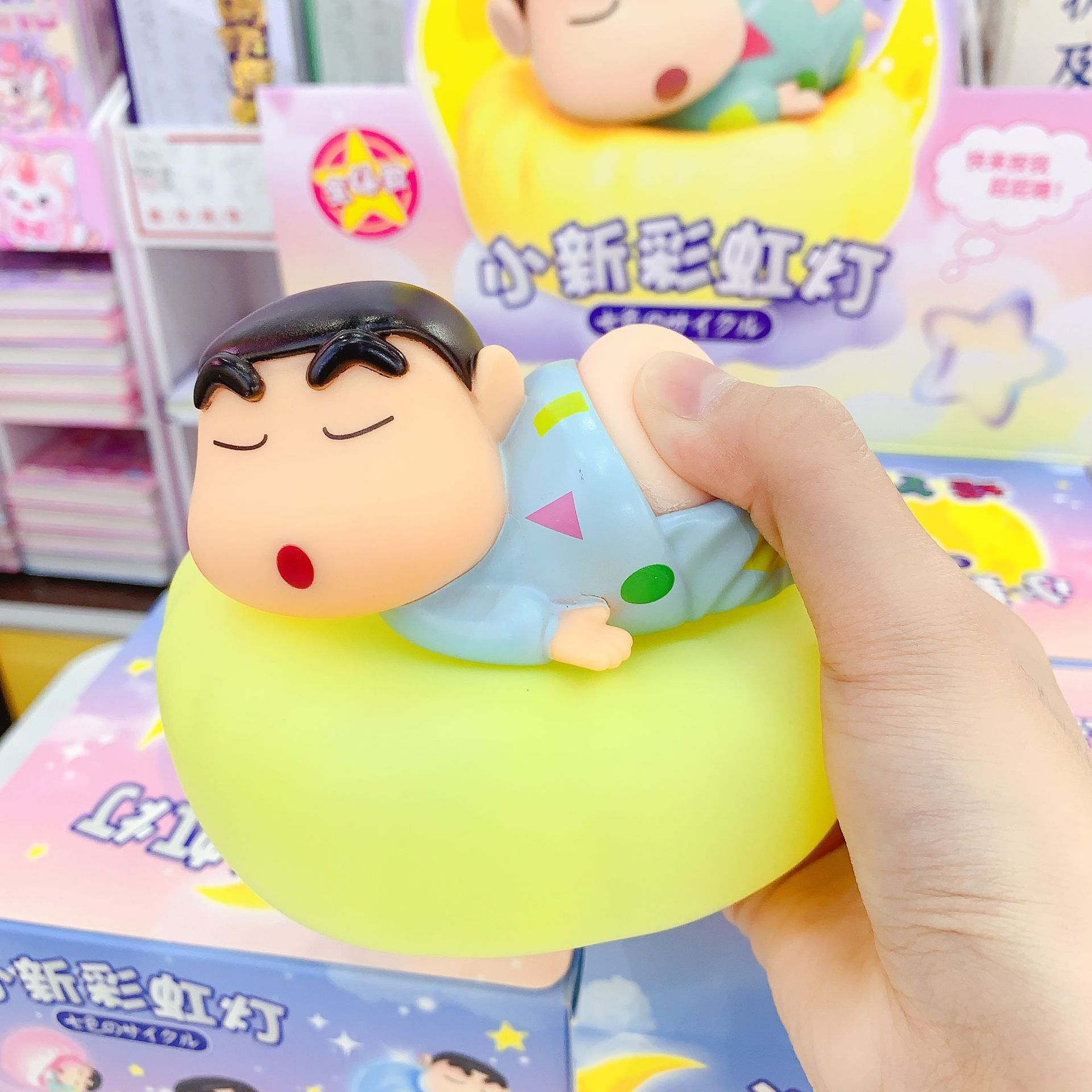 정품 공인 크레용 작은 새로운 무지개 빛 만화 창조적 인 밤 빛은 엉덩이 꼬집는 블라인드 박스 장식품을 빛나게합니다스토어 가기