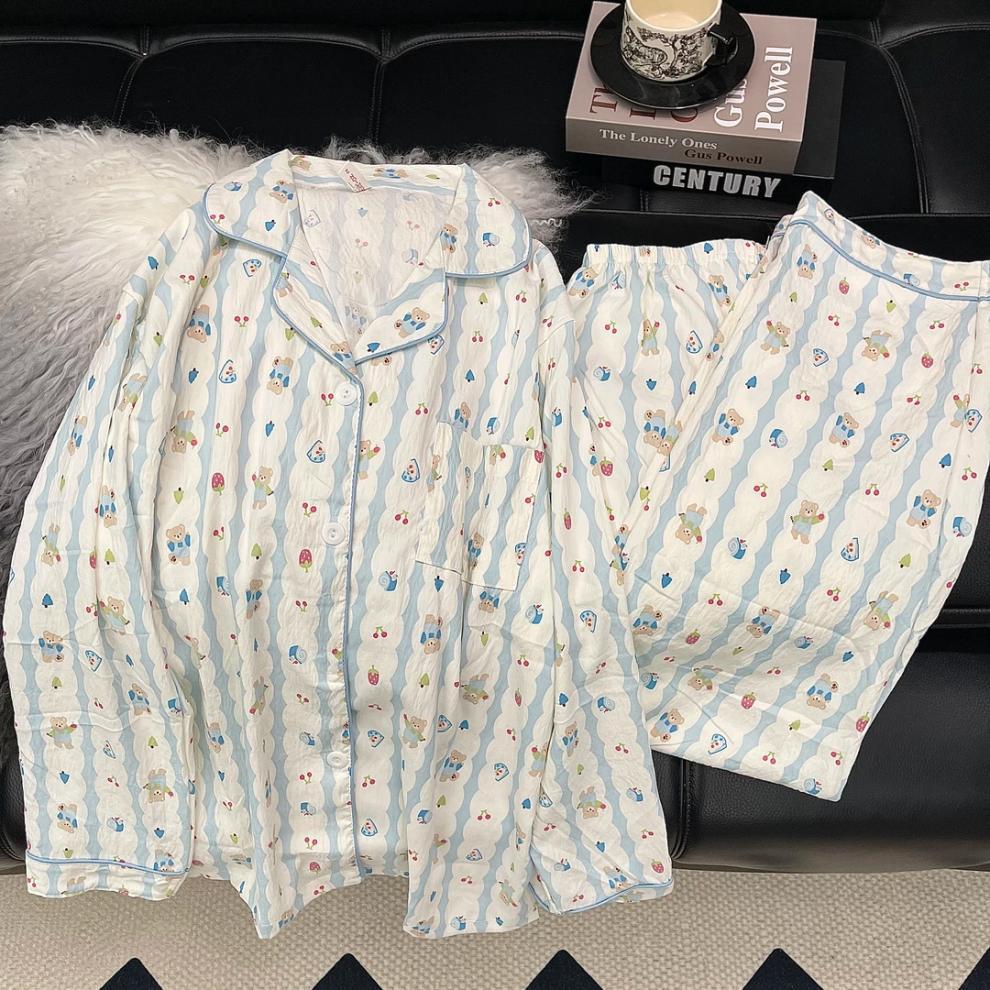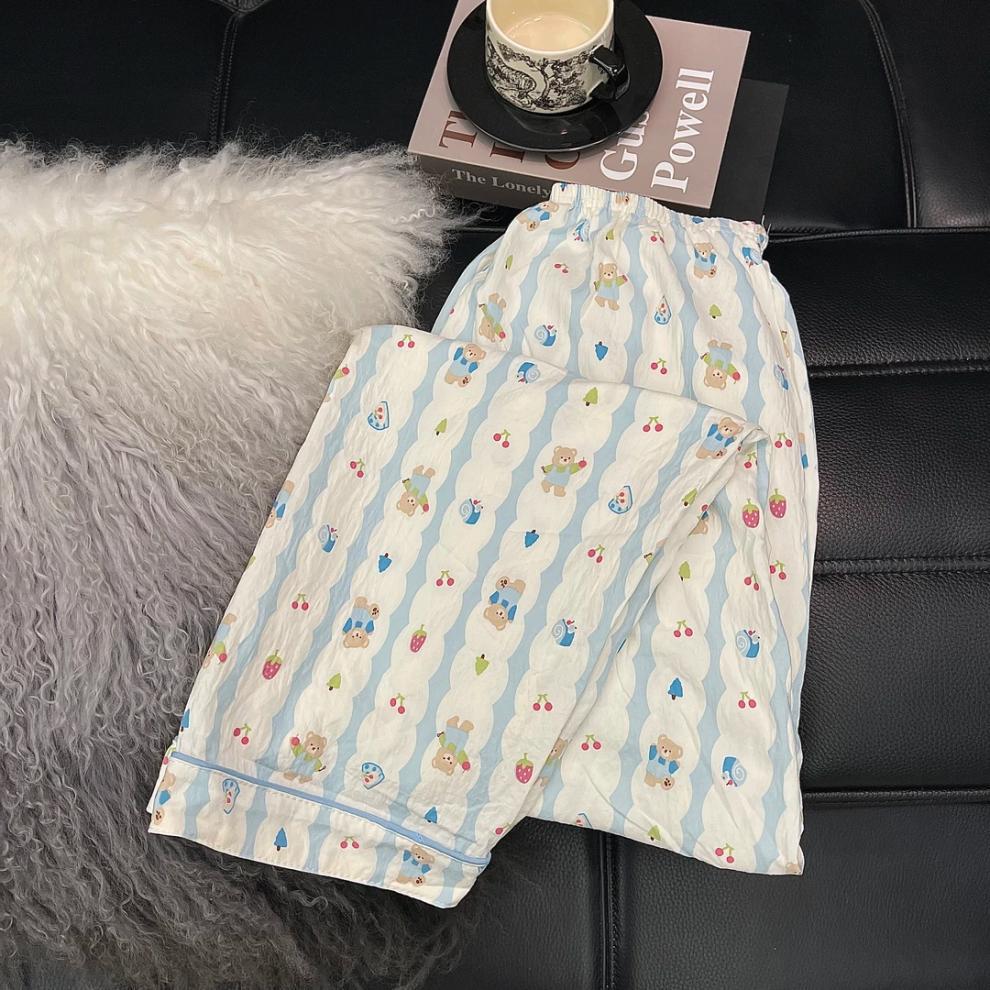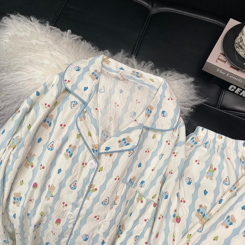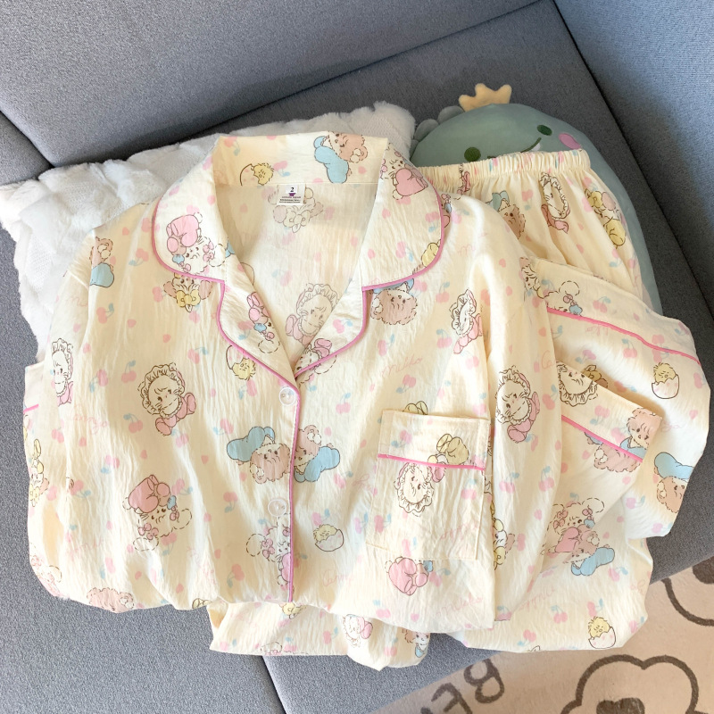구름 면 긴팔 긴바지 만화 잠옷 세트 여학생 홈웨어 외출복으로도 착용 가능 두 조각 통기성 편안함 달콤함