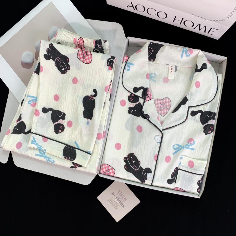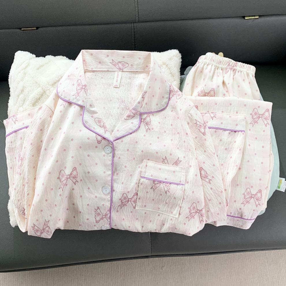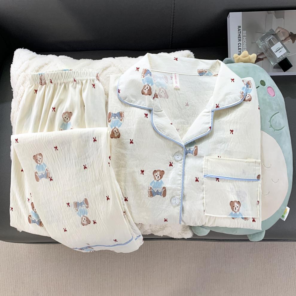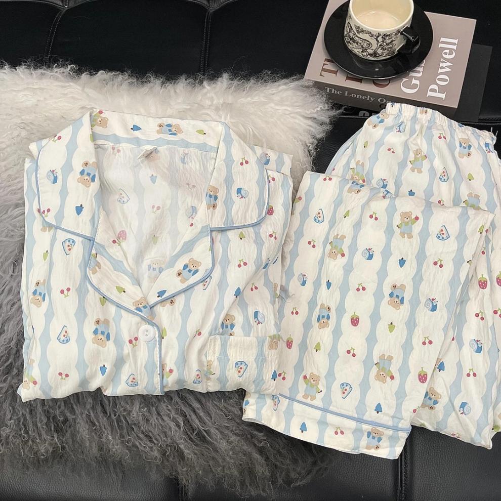 구름 면 긴팔 긴바지 만화 잠옷 세트 여학생 홈웨어 외출복으로도 착용 가능 두 조각 통기성 편안함 달콤함