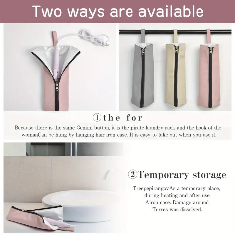 롯데 뜨거운 판매 방수 Pu Litchi 패턴 곱슬 머리 스틱 백 재고 페름 스틱 저장 가방 고온 저항 저장 걸이 가방스토어 가기