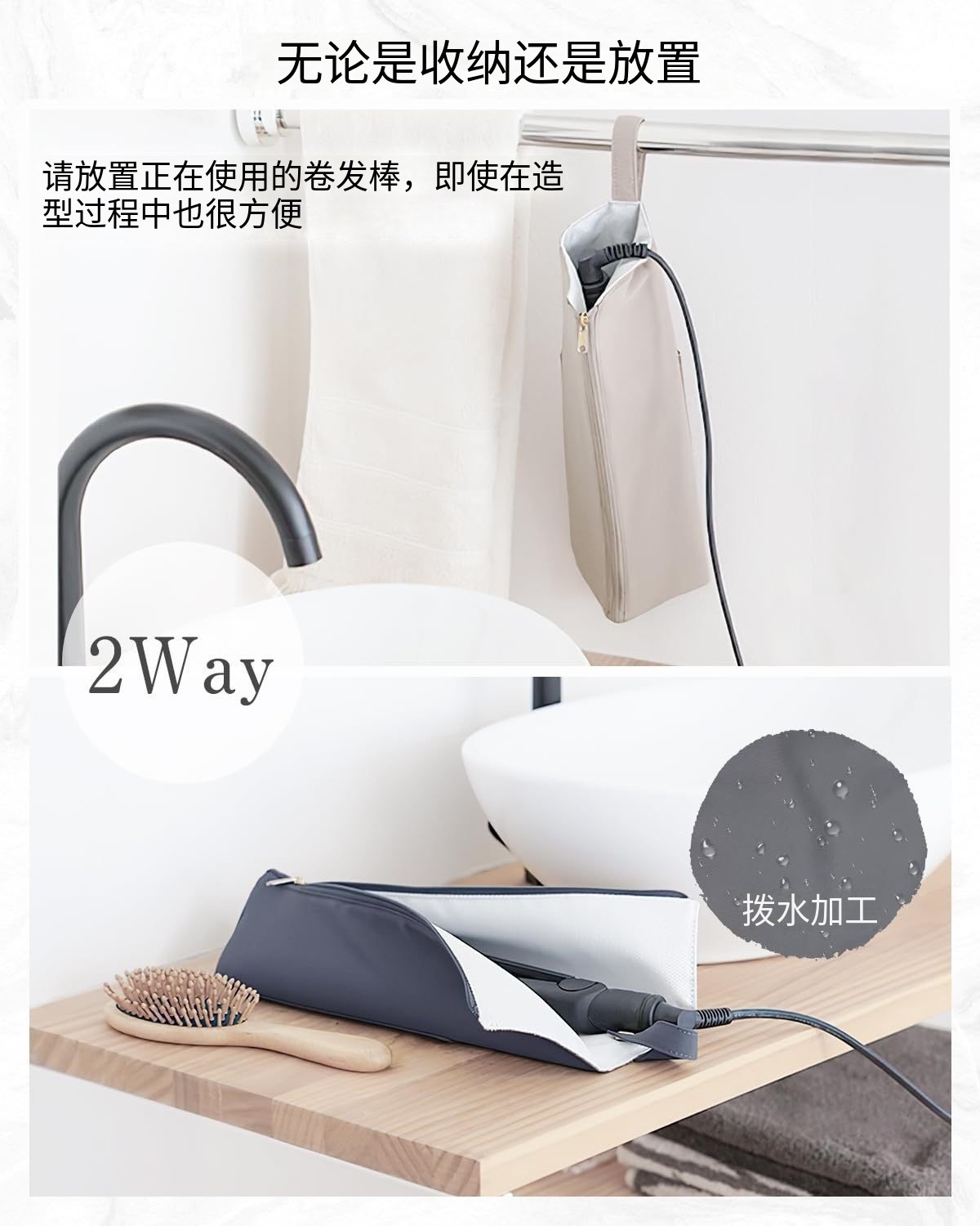 롯데 뜨거운 판매 방수 Pu Litchi 패턴 곱슬 머리 스틱 백 재고 페름 스틱 저장 가방 고온 저항 저장 걸이 가방