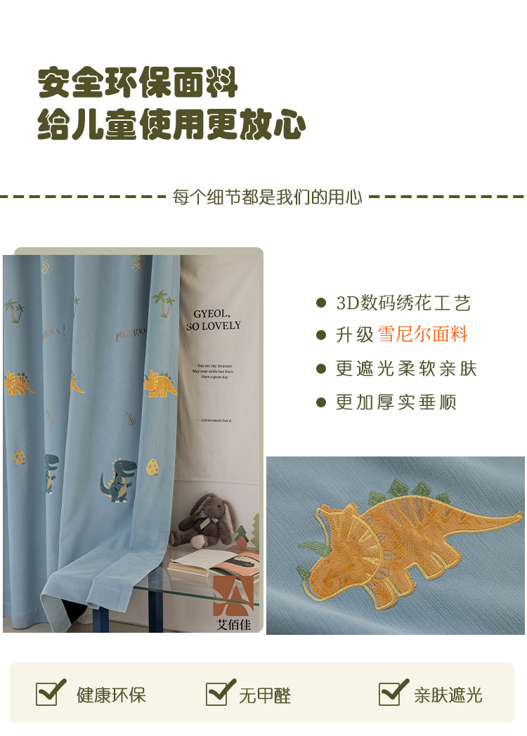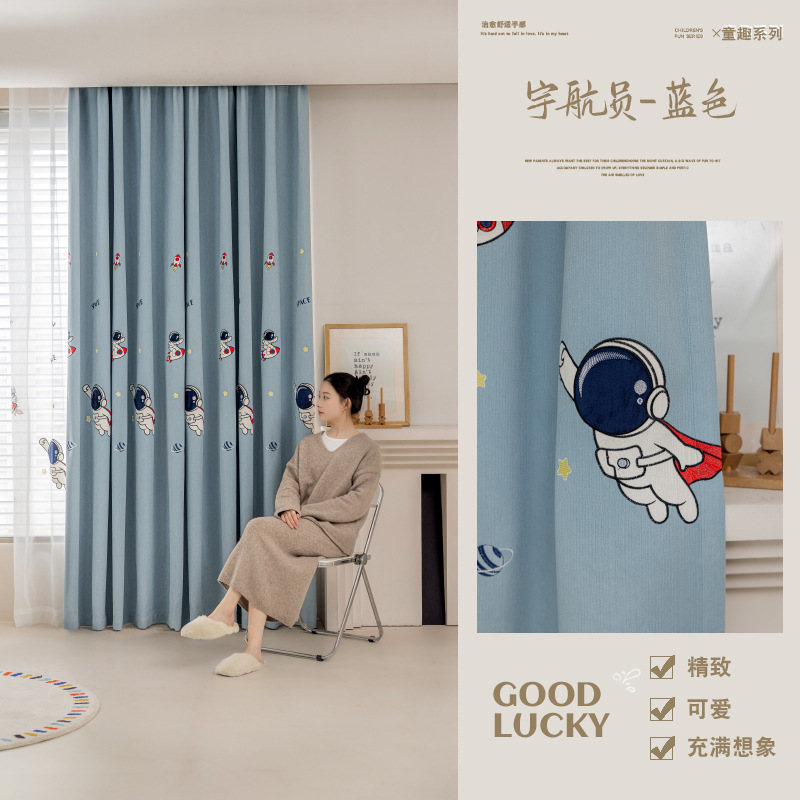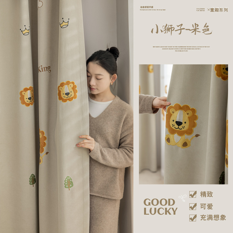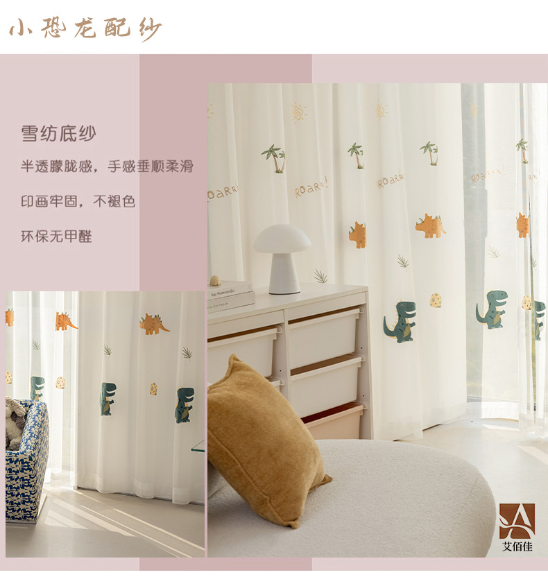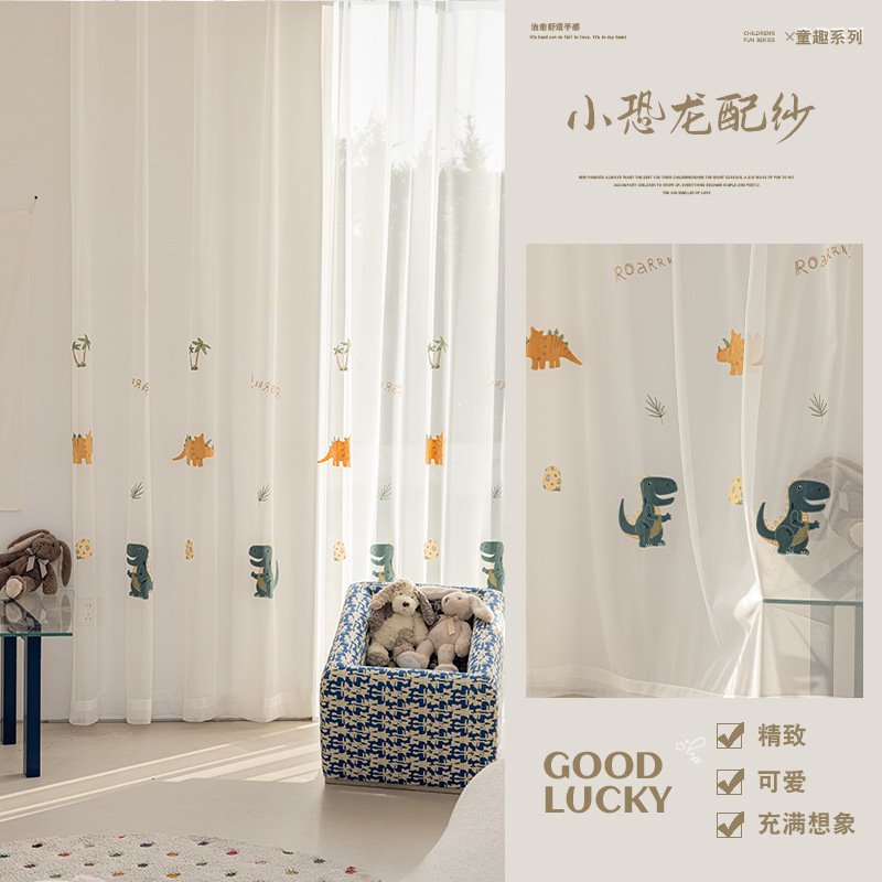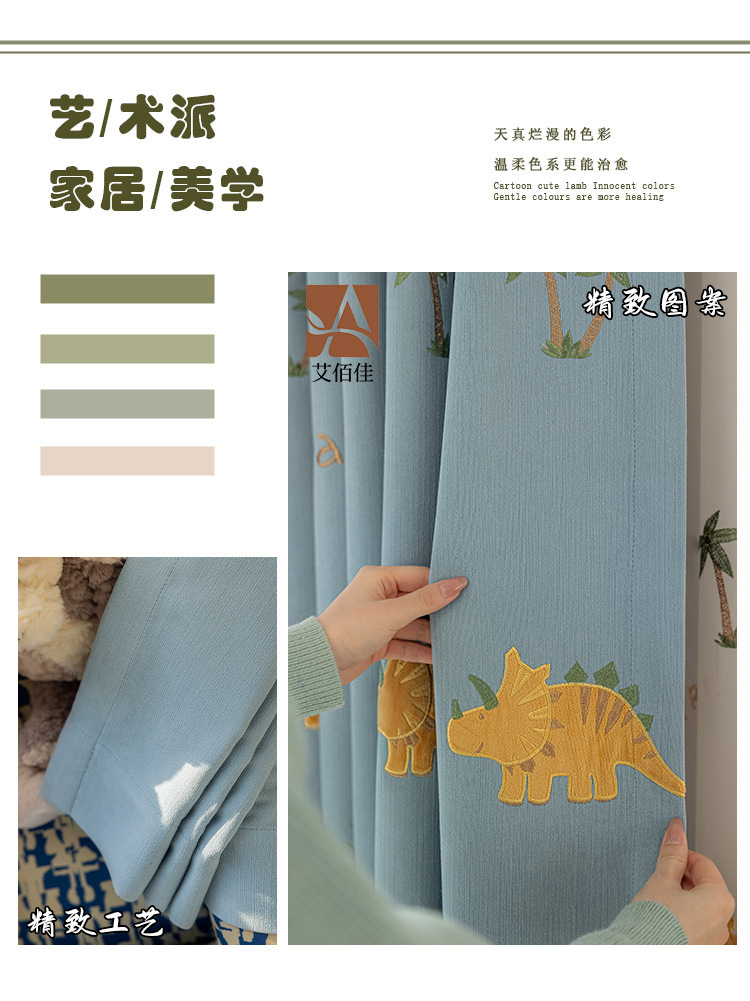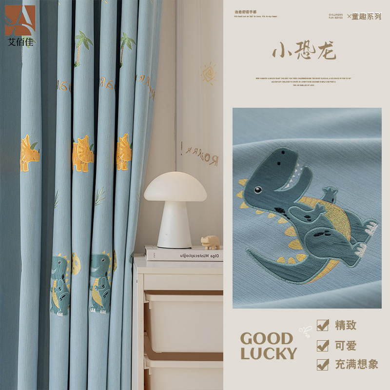 셔닐 어린이 방 커튼 귀여운 만화 수 놓은 커튼 작은 신선한 소년과 소녀 방 작은 공룡 침실