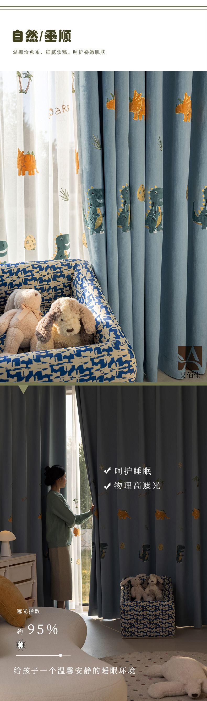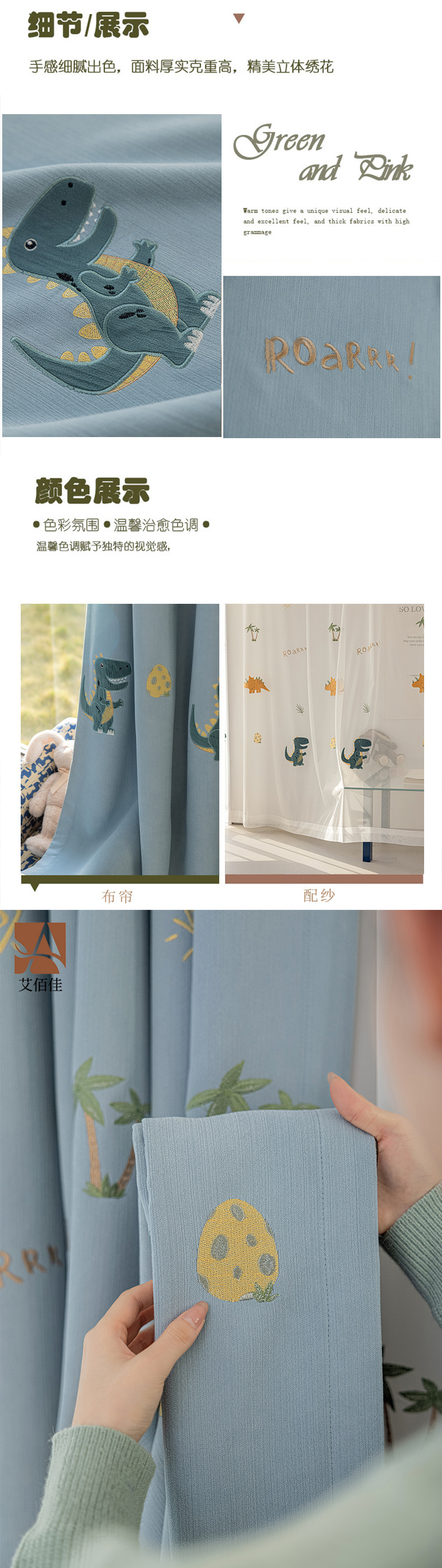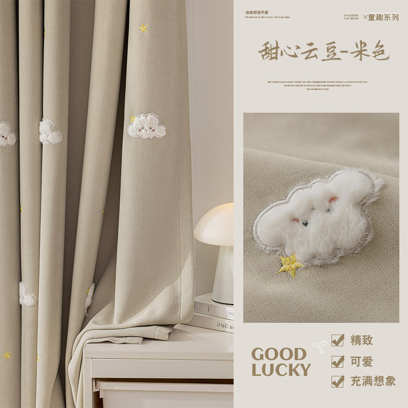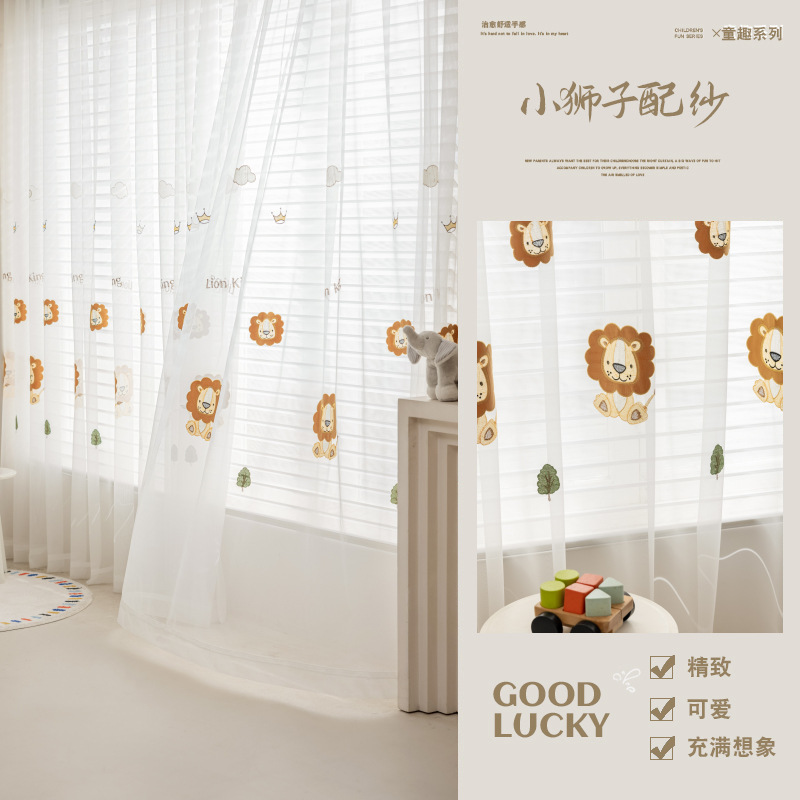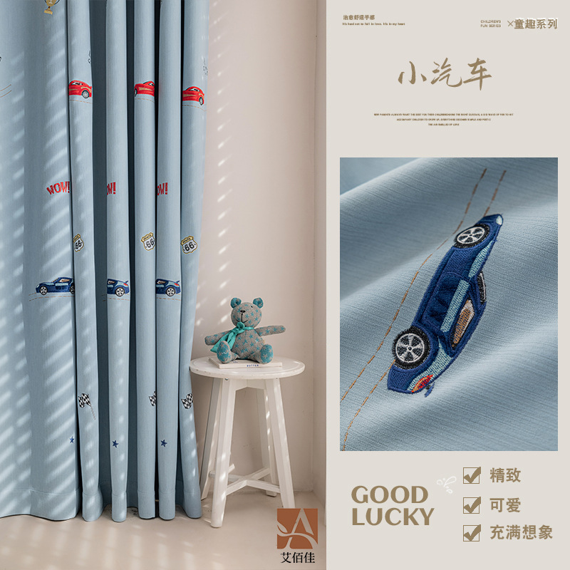 셔닐 어린이 방 커튼 귀여운 만화 수 놓은 커튼 작은 신선한 소년과 소녀 방 작은 공룡 침실