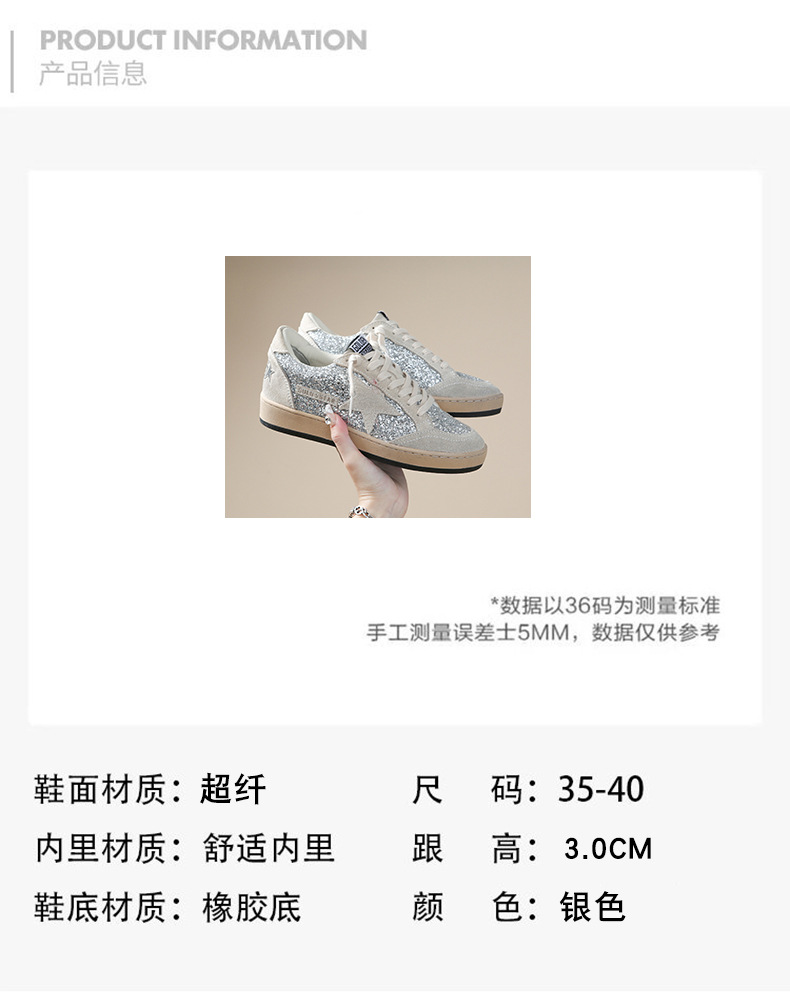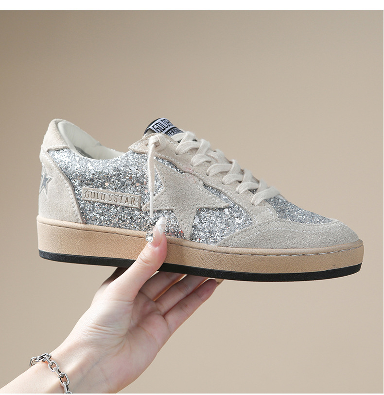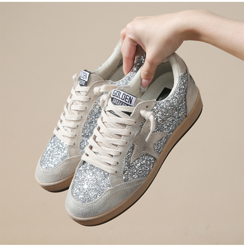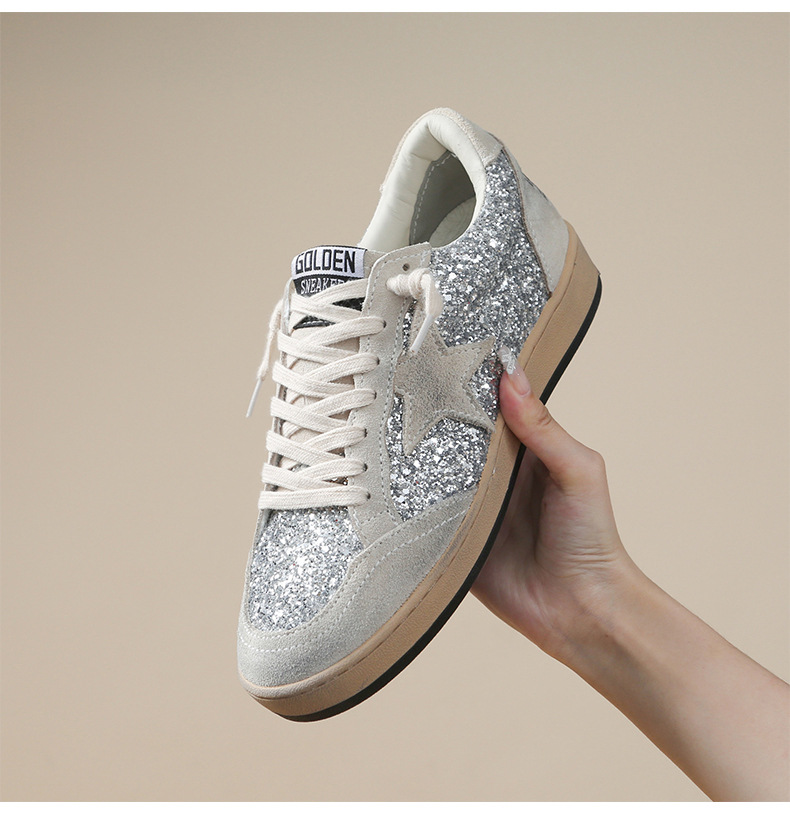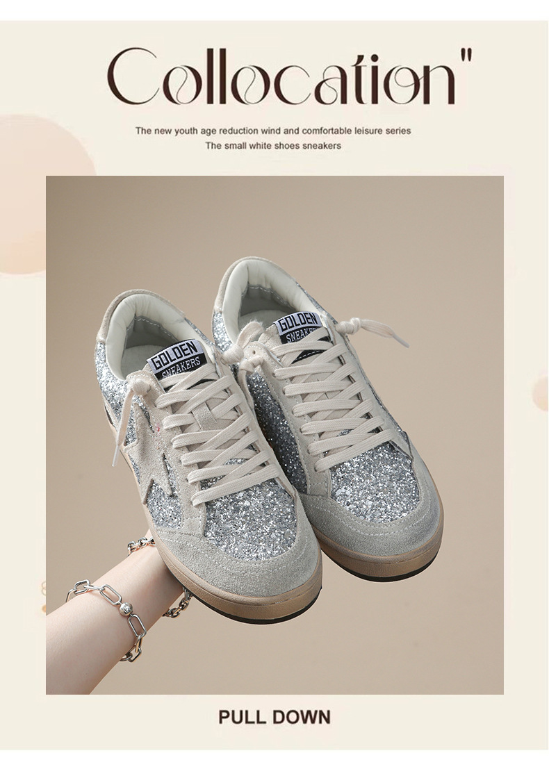 한국 작은 더러운 신발 여성의 새로운 스타일 올드 스타 Sequins 학술 스타일 레이스 업 캐주얼 보드 신발 캐주얼 패션 100