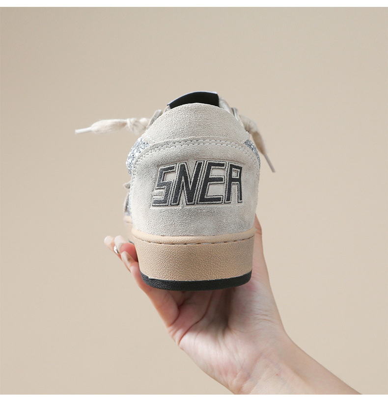 한국 작은 더러운 신발 여성의 새로운 스타일 올드 스타 Sequins 학술 스타일 레이스 업 캐주얼 보드 신발 캐주얼 패션 100스토어 가기