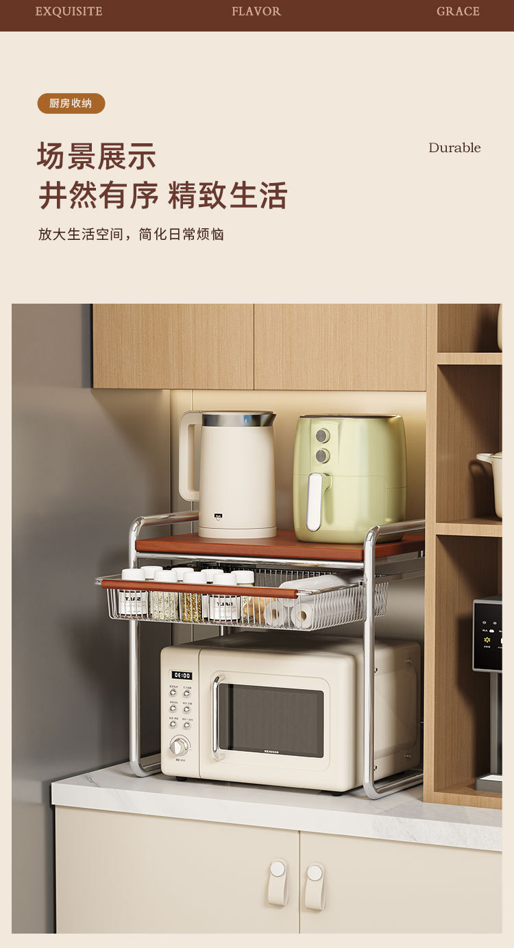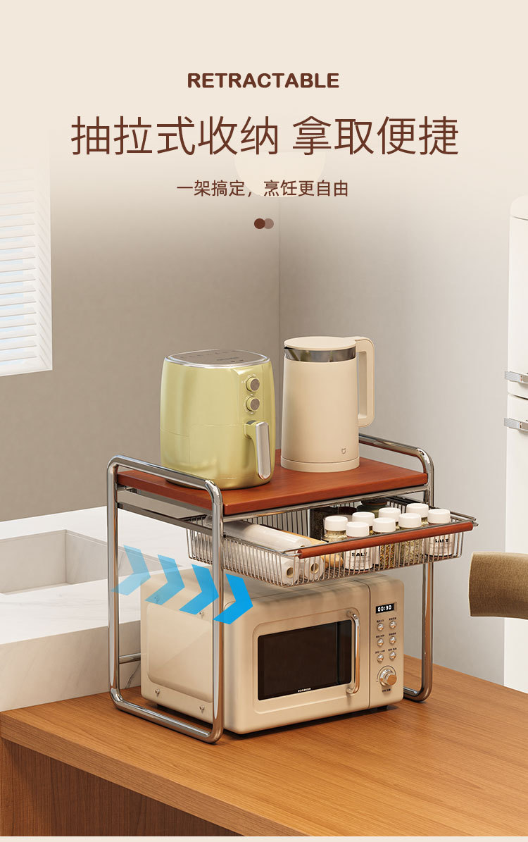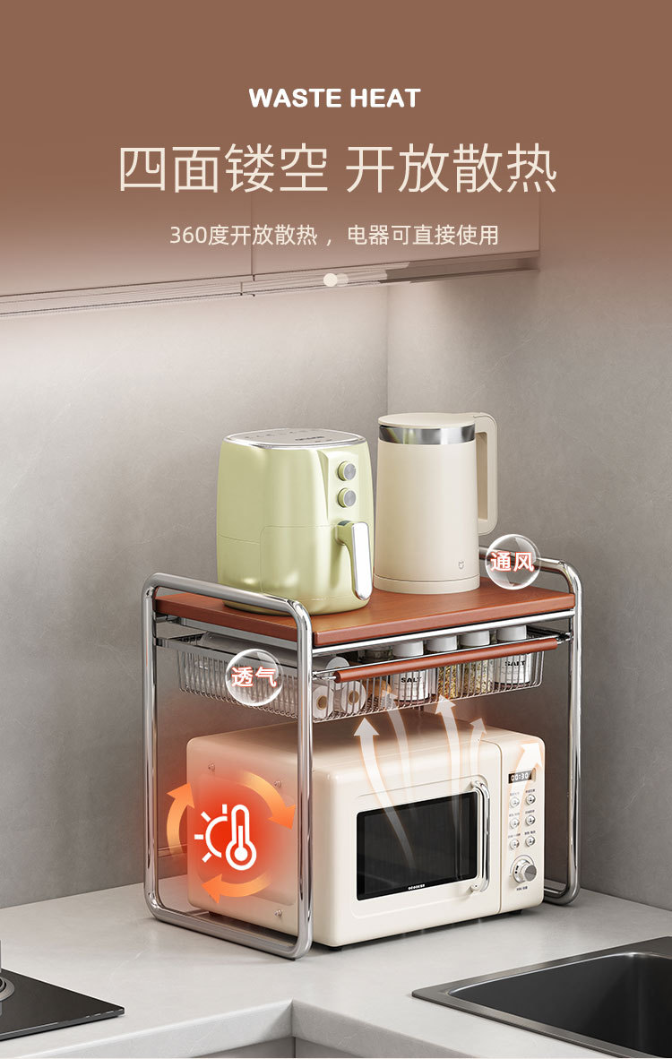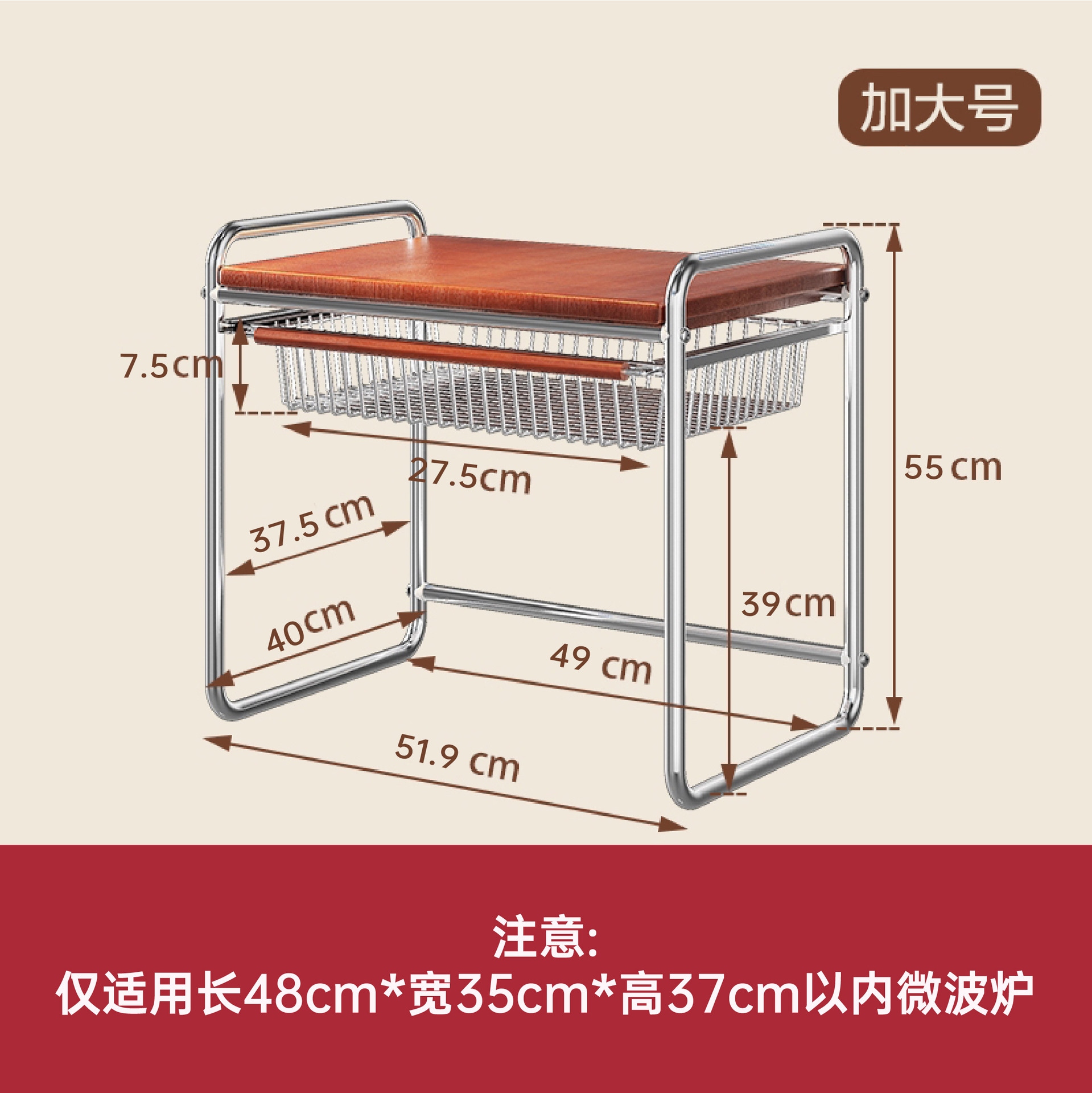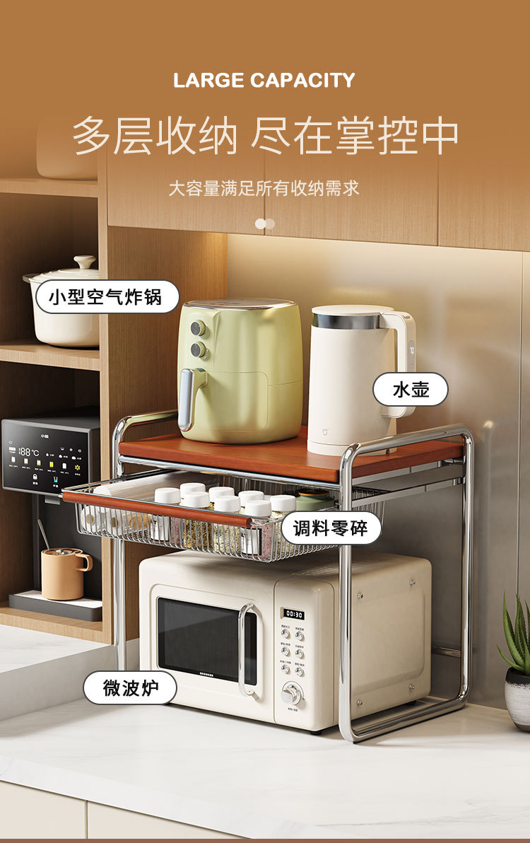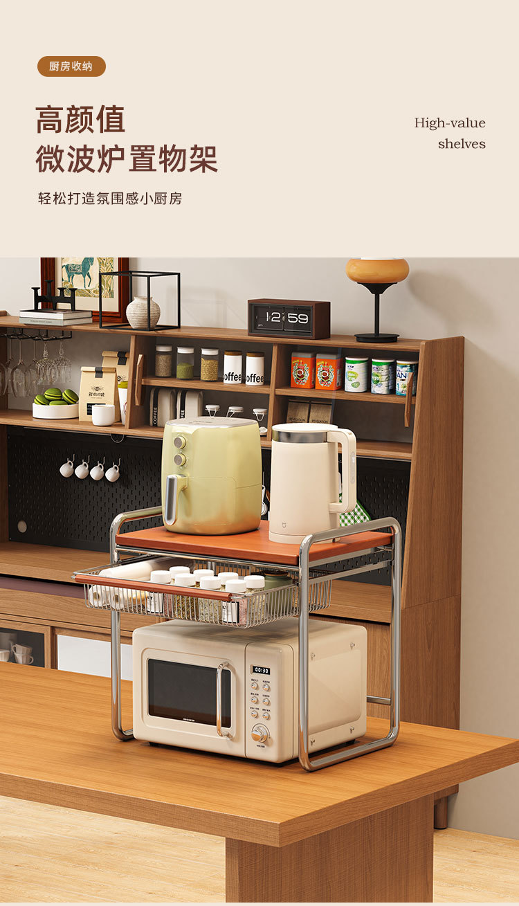 • 바구니가 포함된 초대형 원목 중세 전자레인지 랙