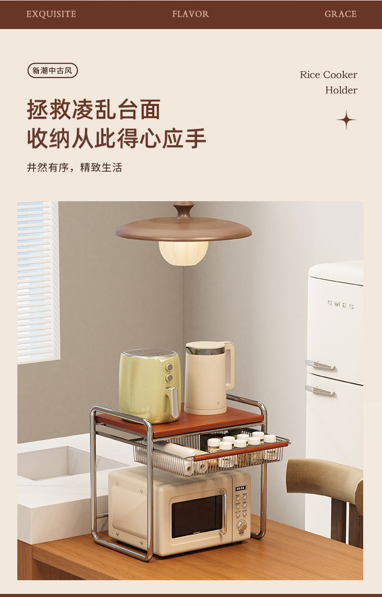 중간 고대 솔리드 우드 전자 레인지 저장 랙 주방 카운터 탑 오븐 브래킷 다기능 저장 쌀밥솥 트레이 보관
