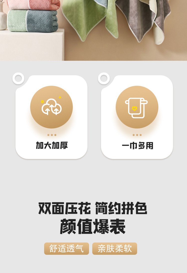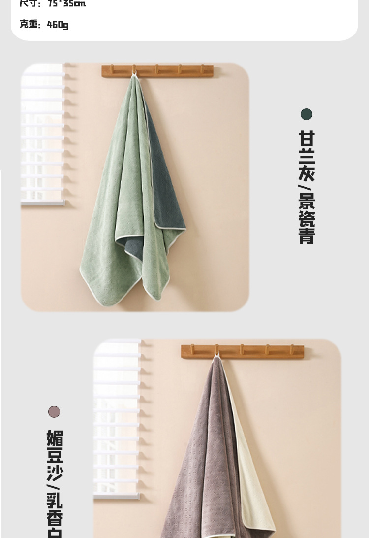 옥색 타월 이중 두께 코랄벨벳 목욕타월 A급 흡수성 빠른 건조 부드럽고 보풀이 없는 목욕용 타월