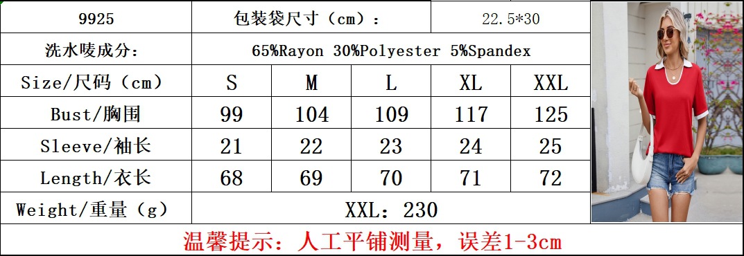 아마존 유럽과 미국 국경 대외 무역 2025 봄과 여름 새로운 대비 컬러 옷깃 짧은 소매 느슨한 티셔츠 최고 여성 재고