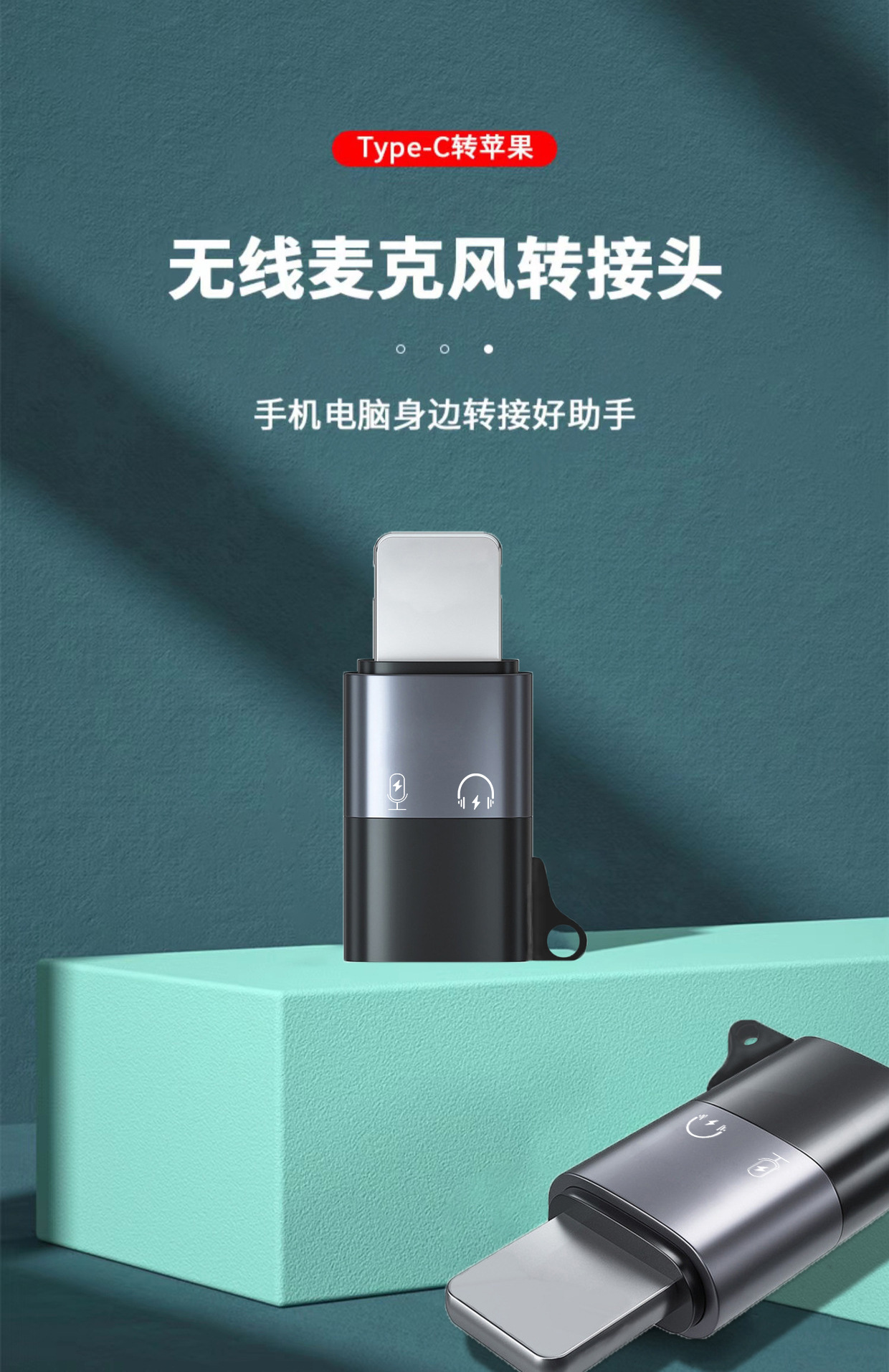 적합 Pingguo 휴대 전화 어댑터 번개 혁명 유형 c 어머니 변환기 지원 무선 마이크