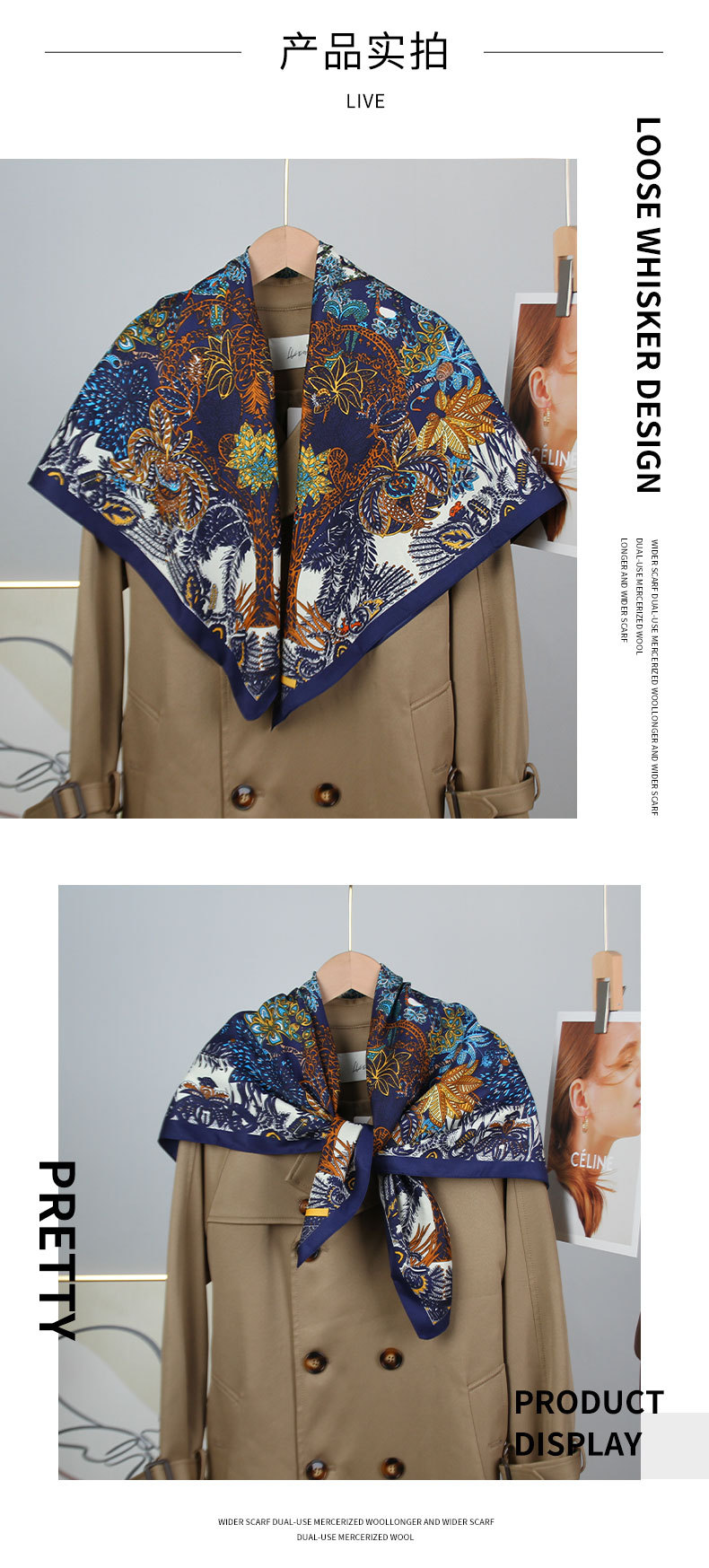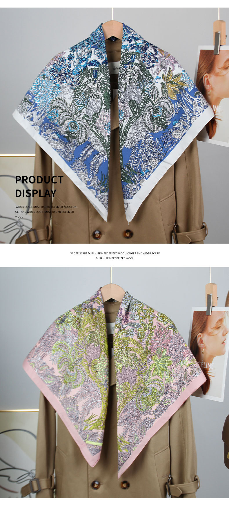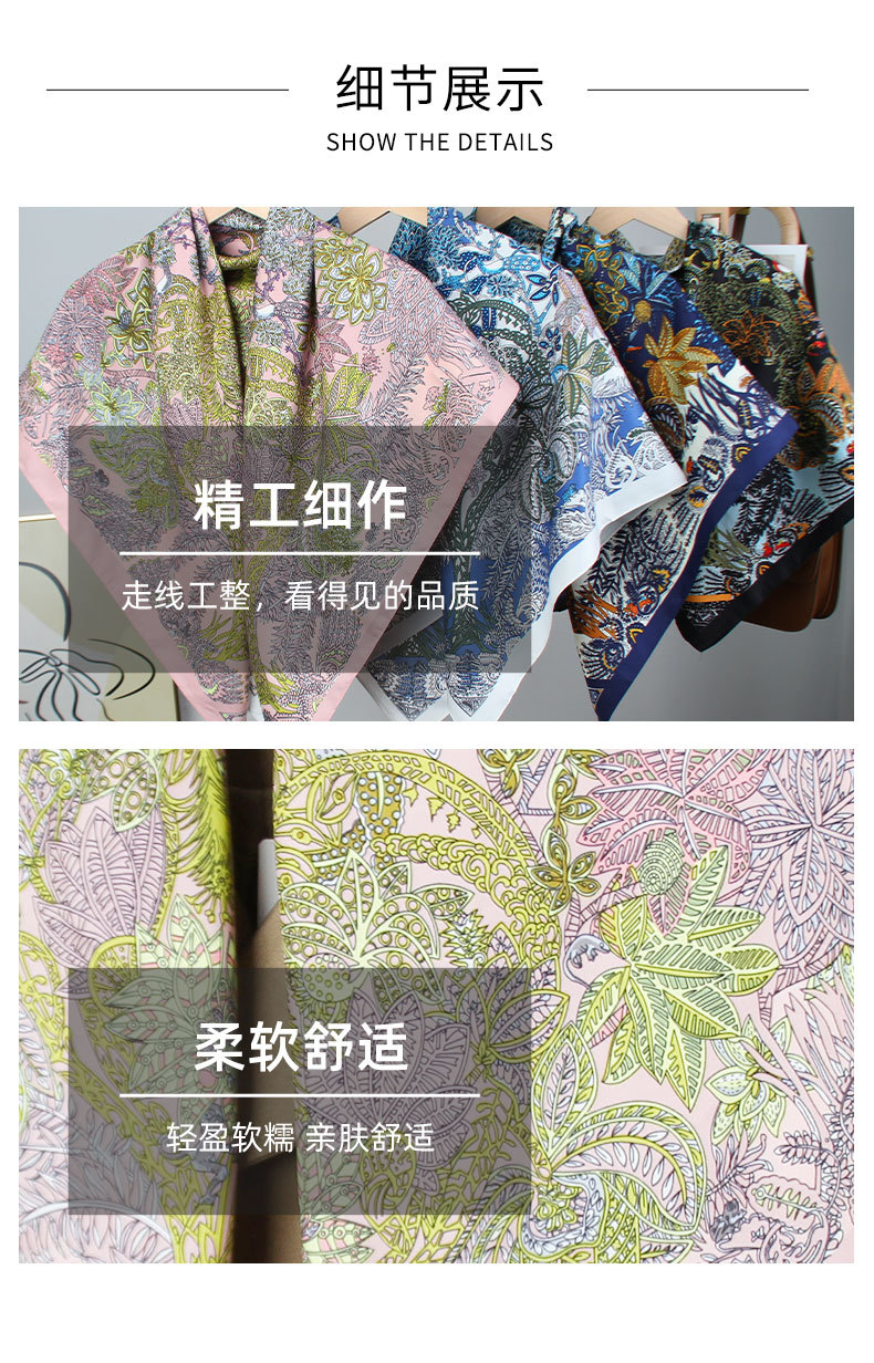 새로운 유럽과 미국 스타일의 가벼운 럭셔리 프린트 스카프 트윌 플로랄 프린트 스카프 90*90 대형 스퀘어 스카프 크로스 국경 목도리