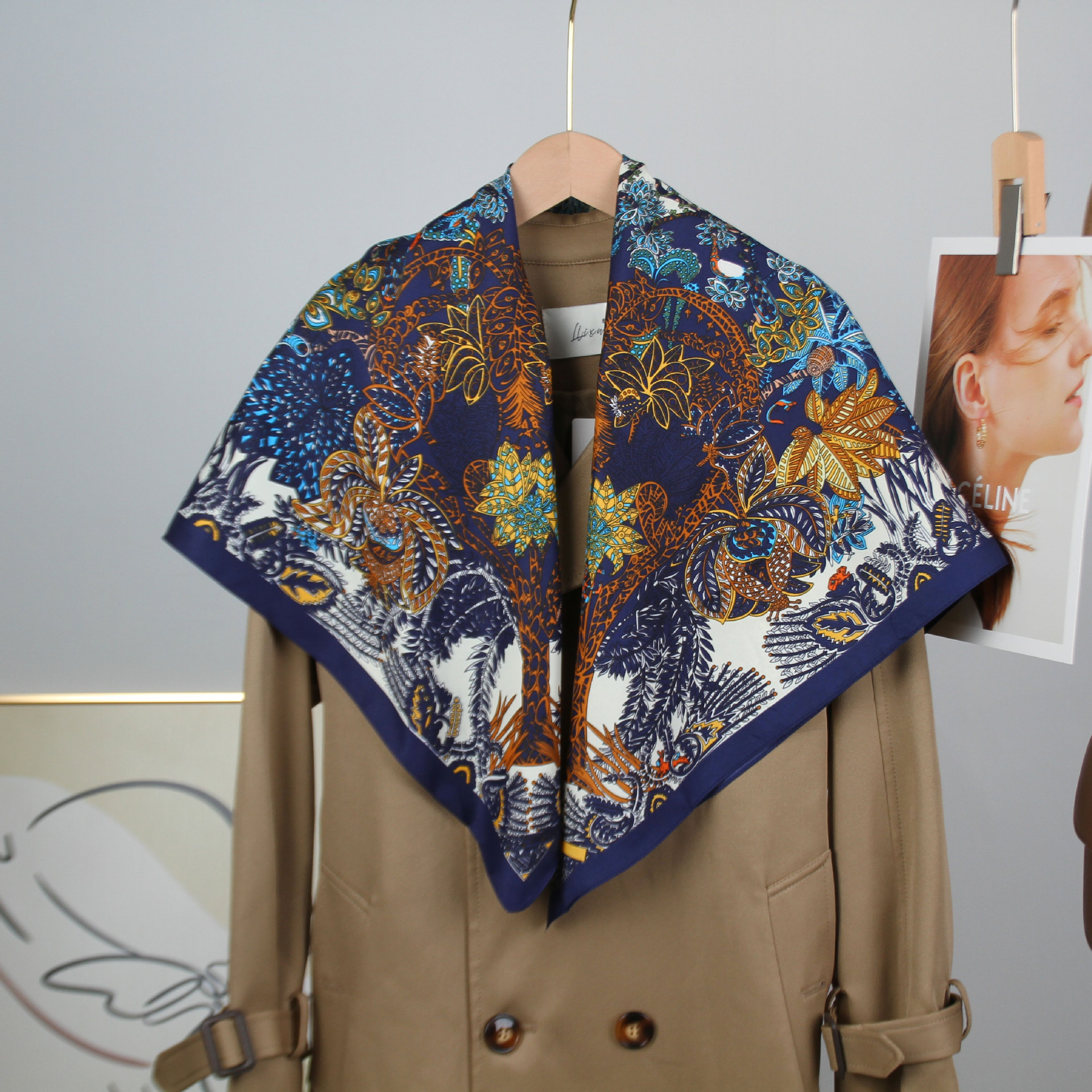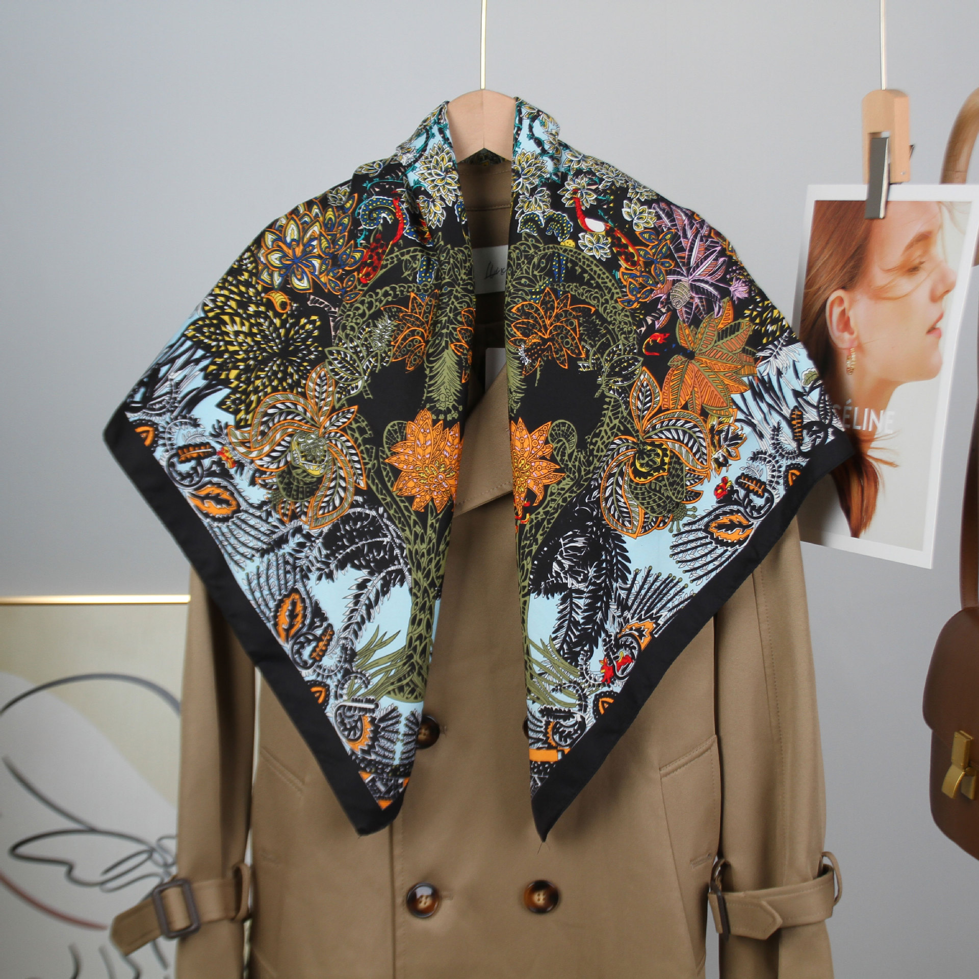 새로운 유럽과 미국 스타일의 가벼운 럭셔리 프린트 스카프 트윌 플로랄 프린트 스카프 90*90 대형 스퀘어 스카프 크로스 국경 목도리스토어 가기