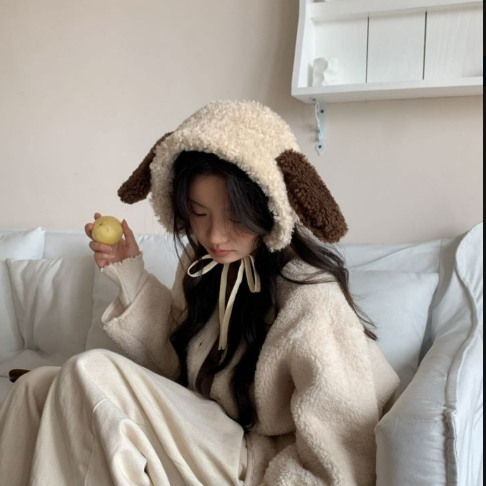 가을과 겨울 고급 따뜻한 귀마개 귀여운 강아지 귀 양고기 양털 부동액 귀마개를 타고 귀 보호 봉제 귀마개스토어 가기