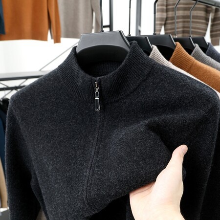 100 순수 양모 코트 양모 스웨터 남자 겨울 두꺼운 따뜻한 카디건 칼라 니트 지퍼 스위트 베이스스토어 가기