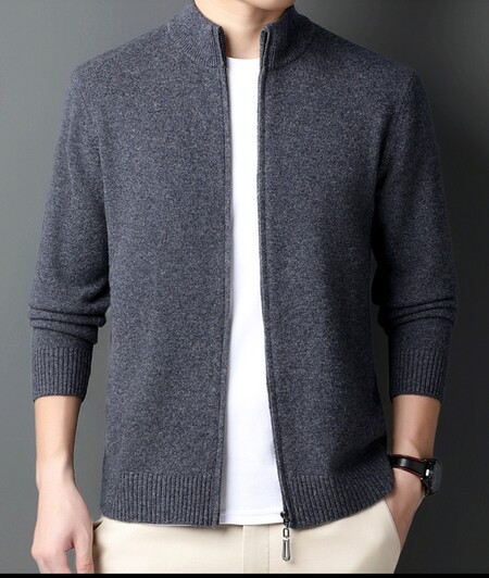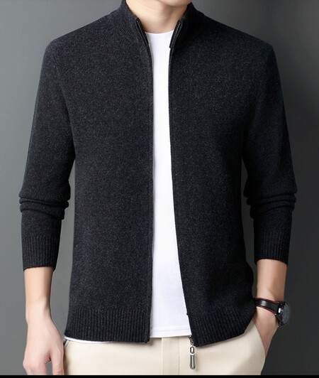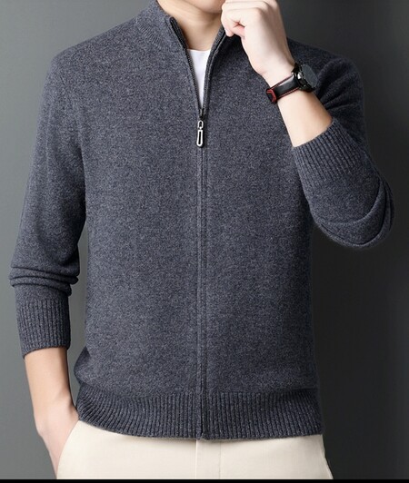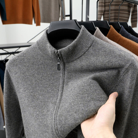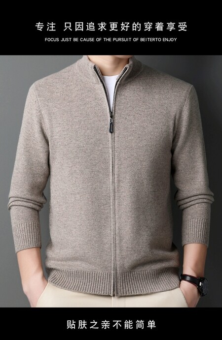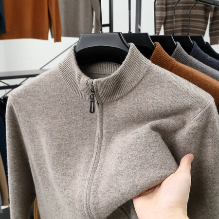 100 순수 양모 코트 양모 스웨터 남자 겨울 두꺼운 따뜻한 카디건 칼라 니트 지퍼 스위트 베이스