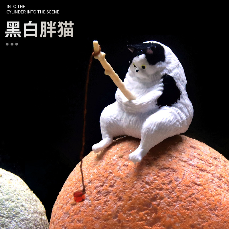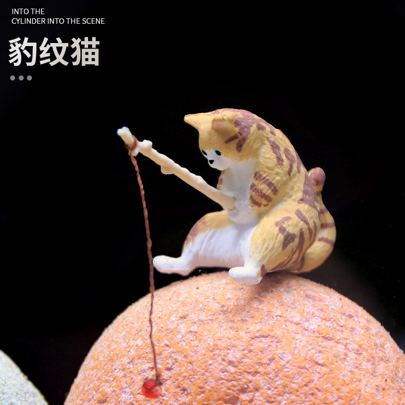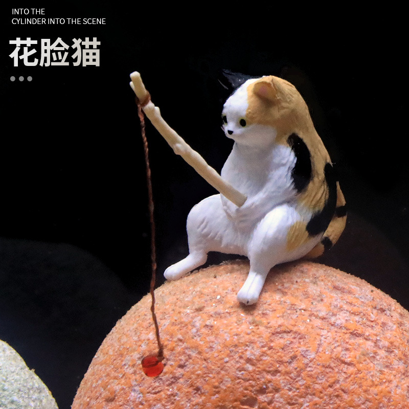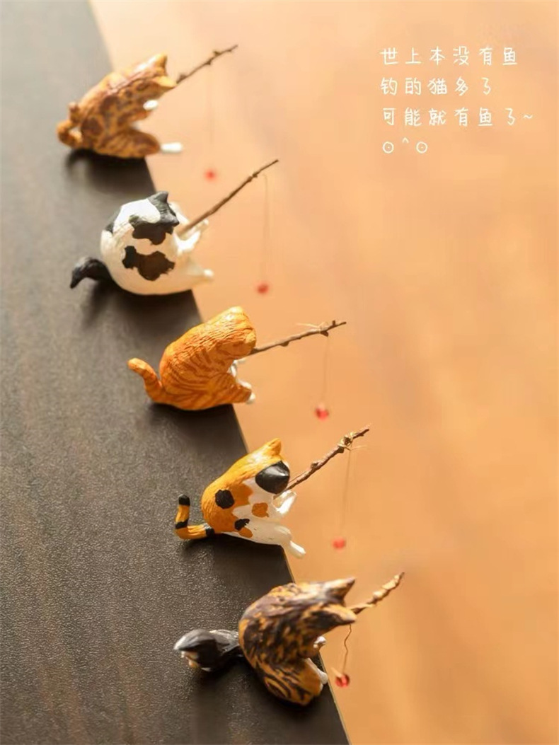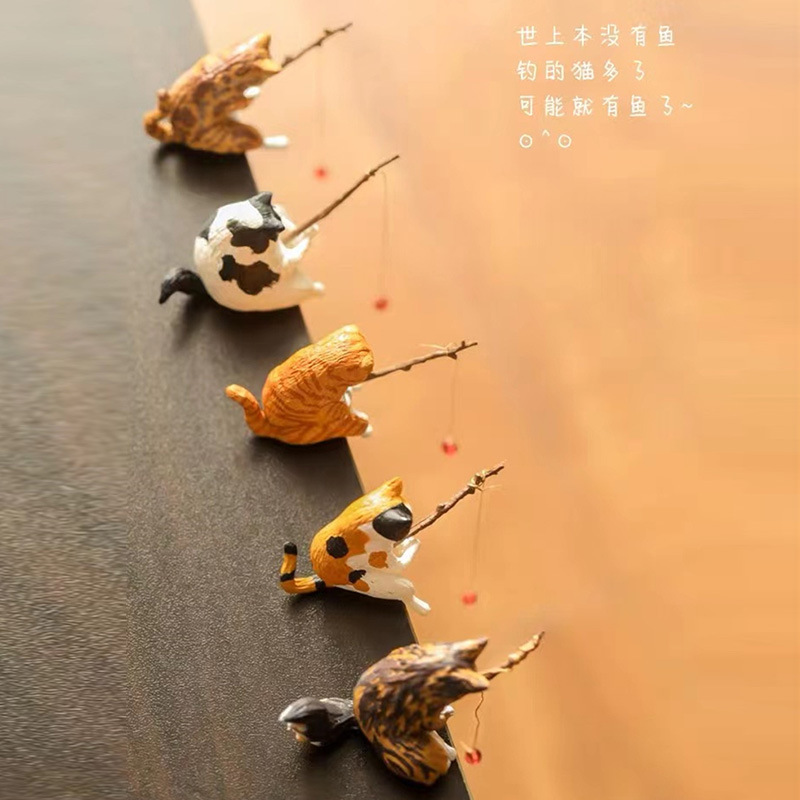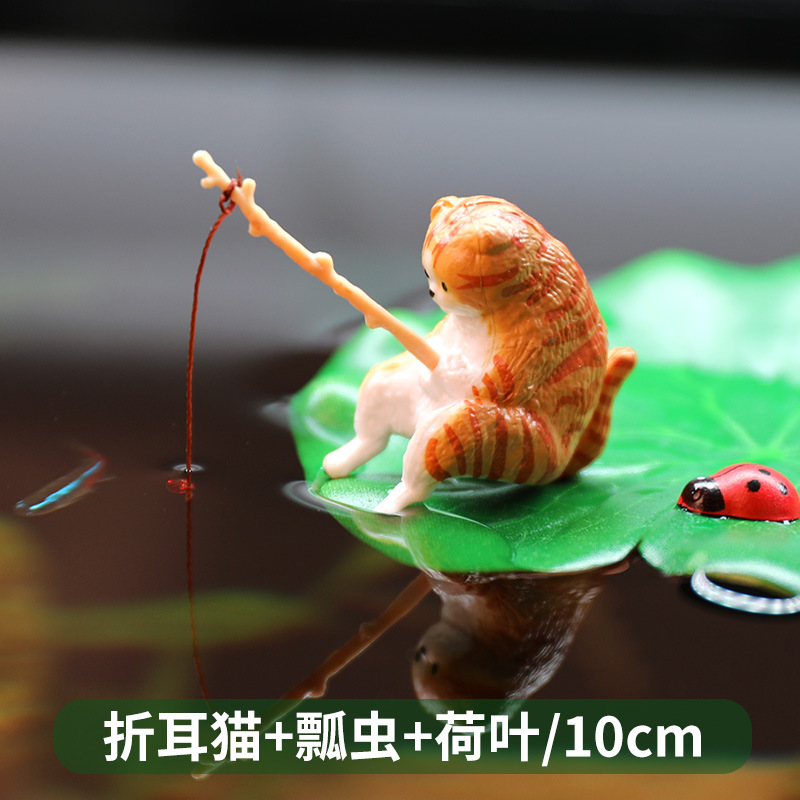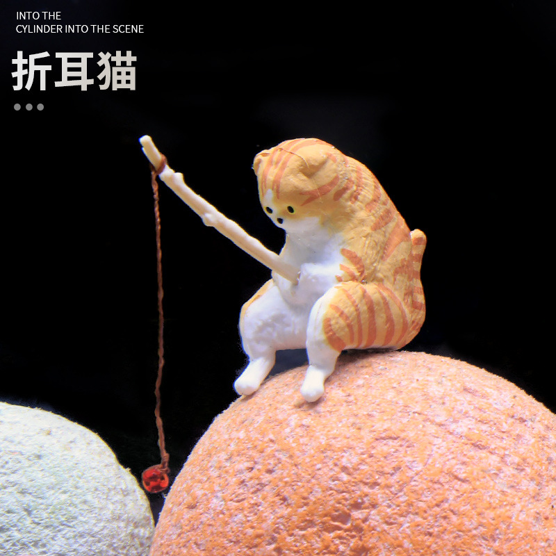 크로스보더 어항 낚시 고양이 장식품, 창의적인 조경 장식, 데스크탑 전용 낚시 장식품, 미니 장식, 미니어처 풍경