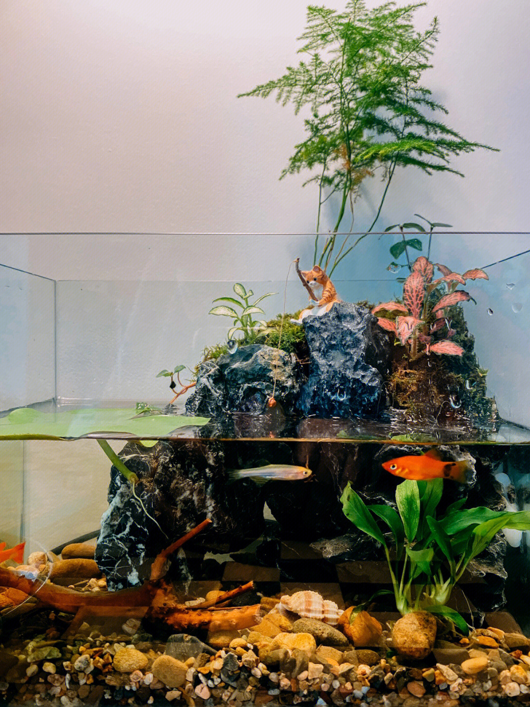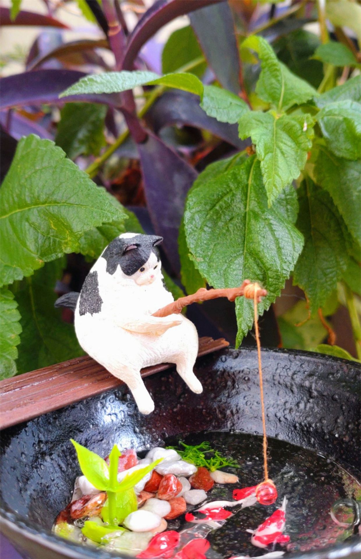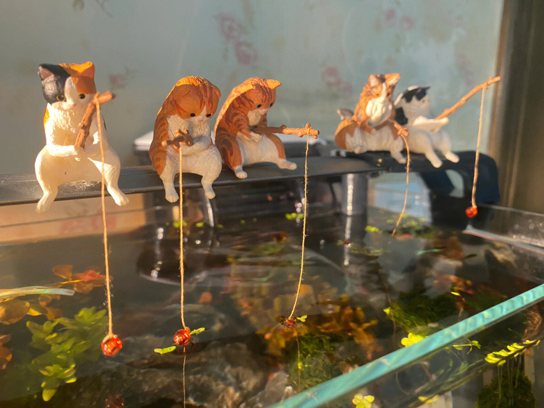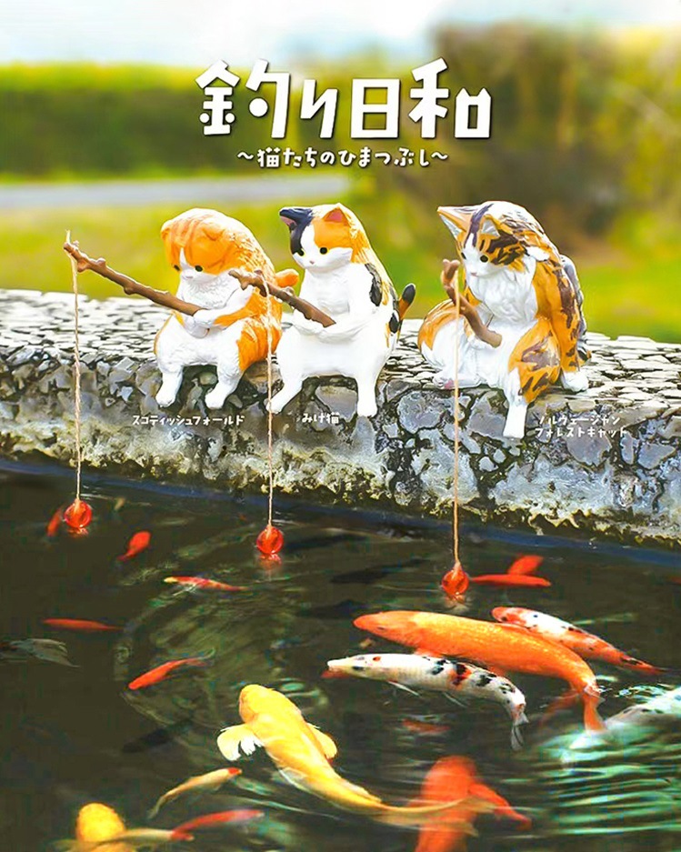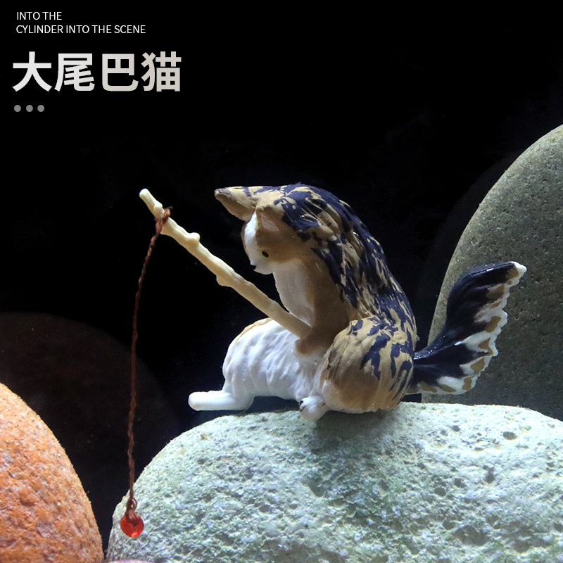 크로스보더 어항 낚시 고양이 장식품, 창의적인 조경 장식, 데스크탑 전용 낚시 장식품, 미니 장식, 미니어처 풍경