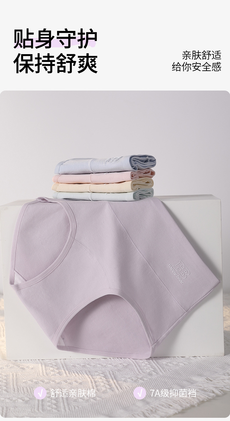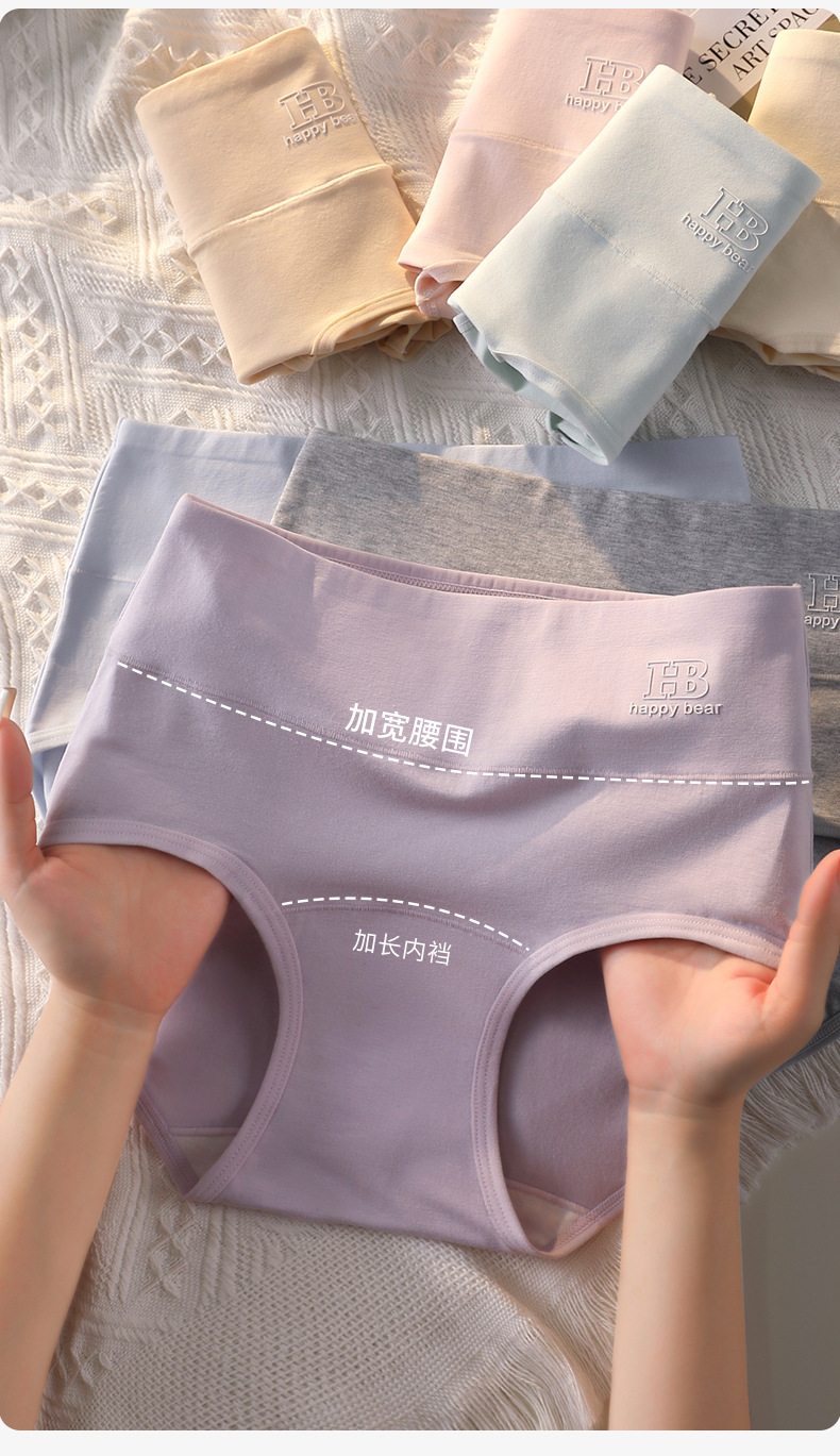 순면 하이웨이스트 가벼운 뱃살 조절 여성 속옷 7A 항균 확장 가랑이 힙 커버 심플 힙 리프팅 대형 삼각 반바지