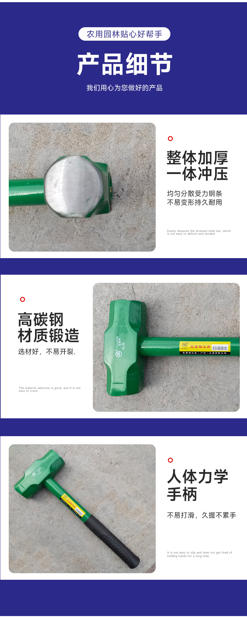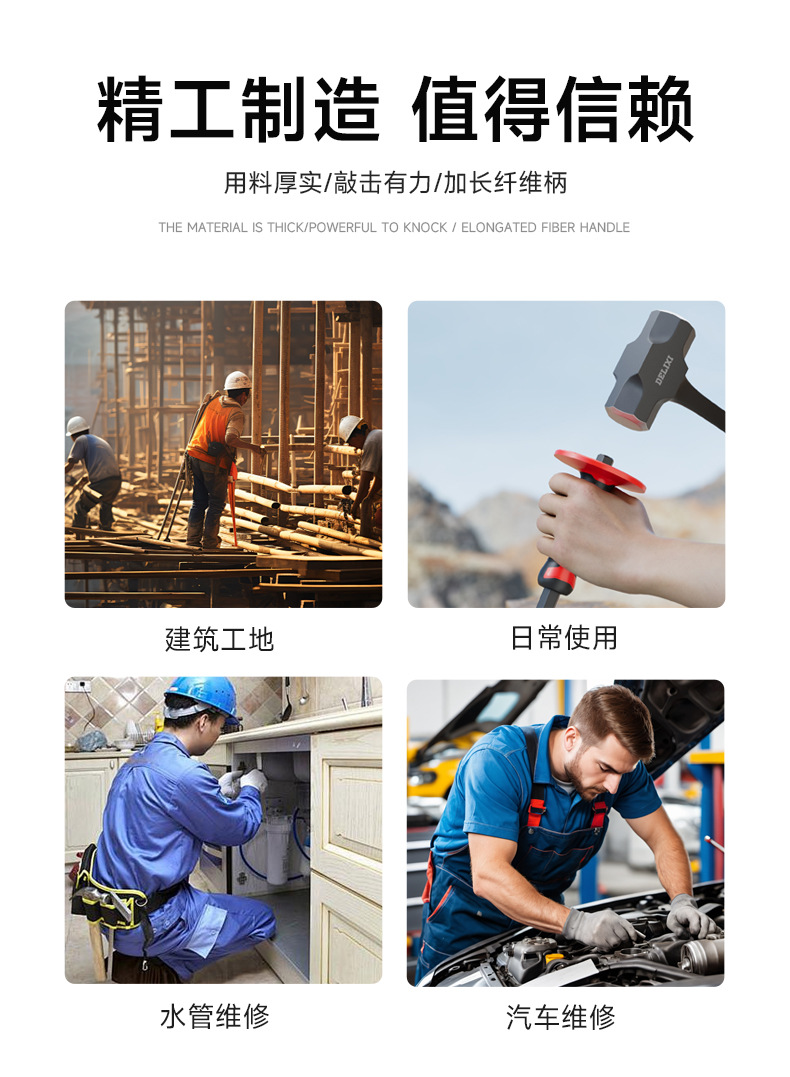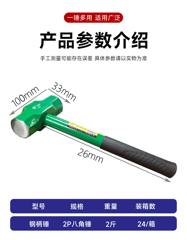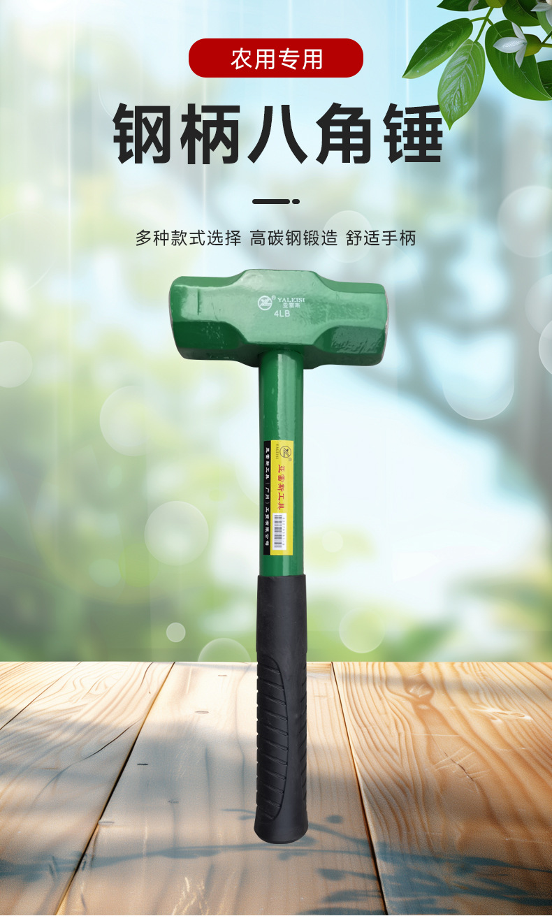 하드웨어 도구 석조 망치 다기능 2P3P4P 스틸 파이프 핸들 팔각형 망치 벽 스매싱 벽돌 망치 재고 도매