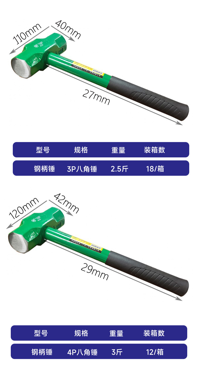 하드웨어 도구 석조 망치 다기능 2P3P4P 스틸 파이프 핸들 팔각형 망치 벽 스매싱 벽돌 망치 재고 도매스토어 가기