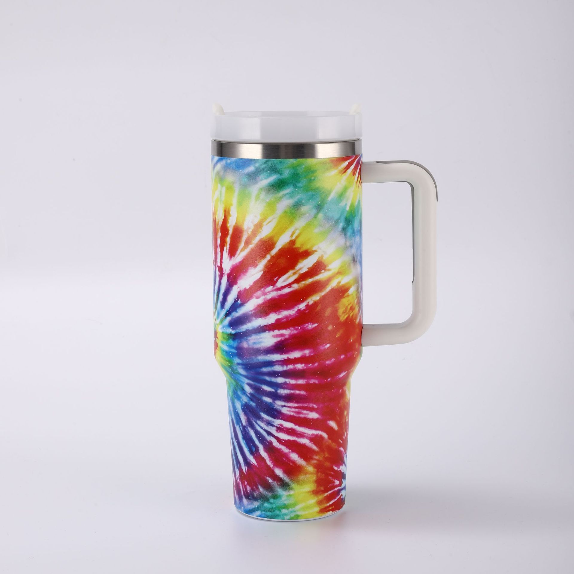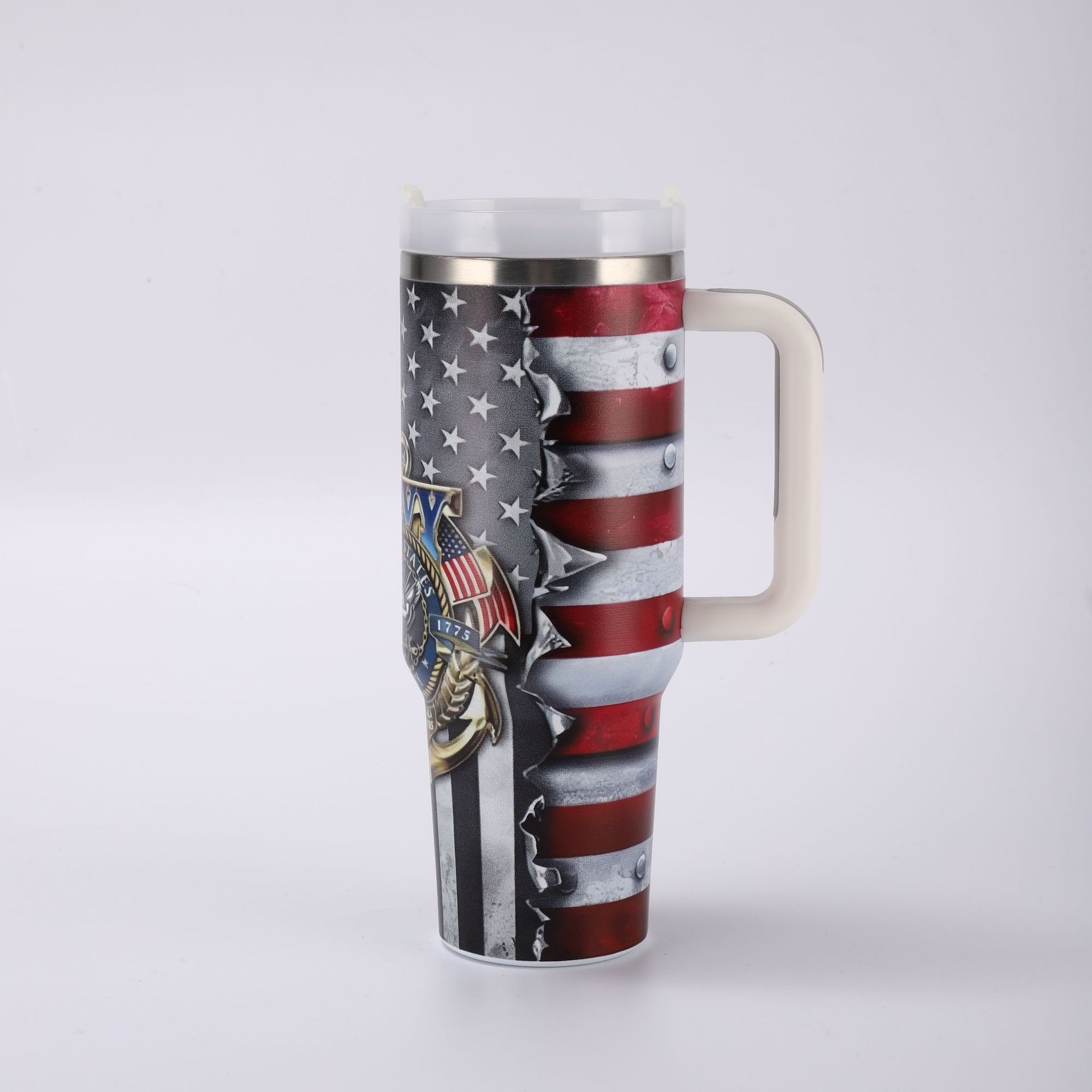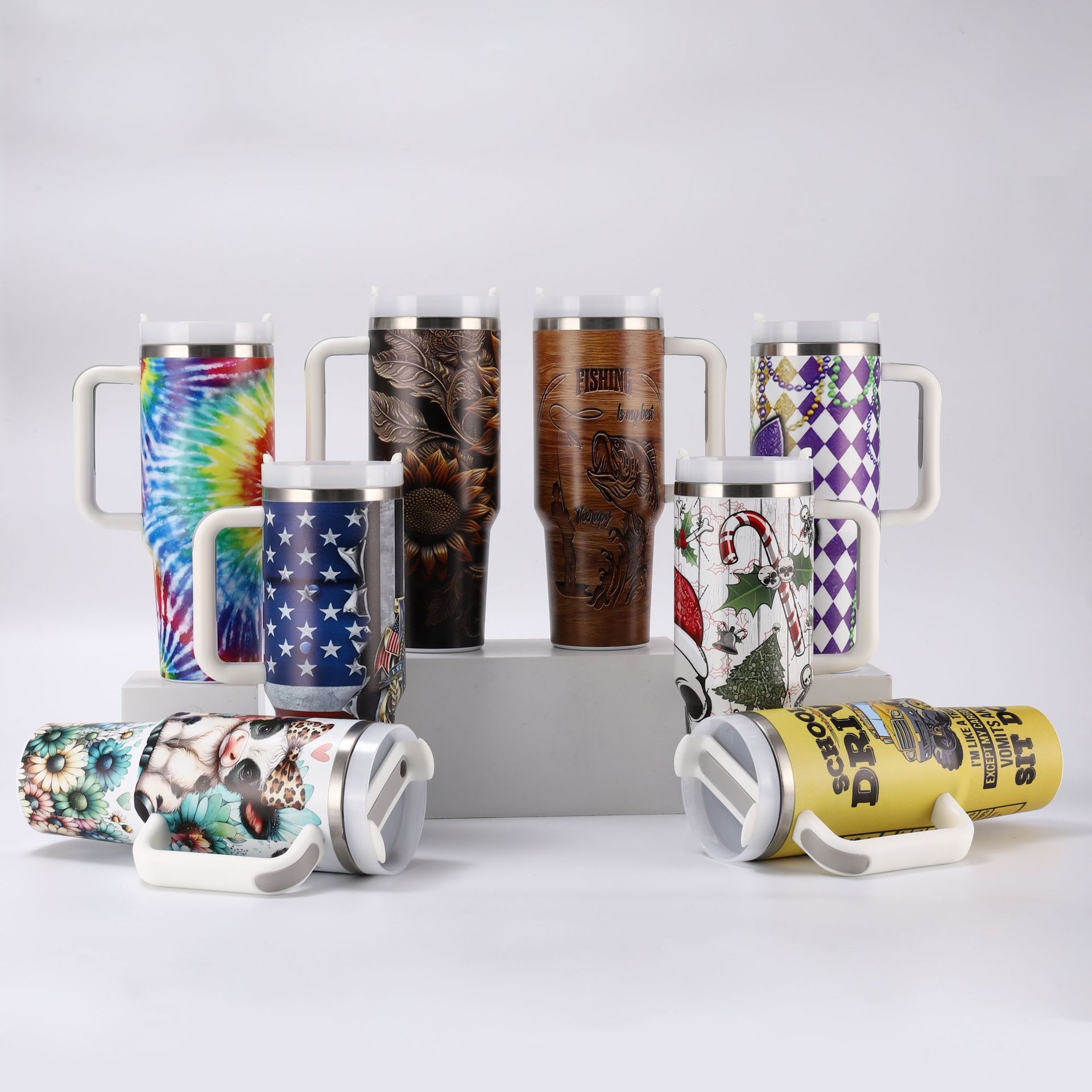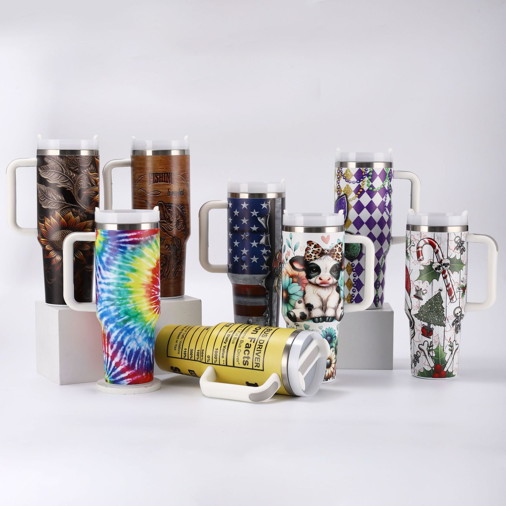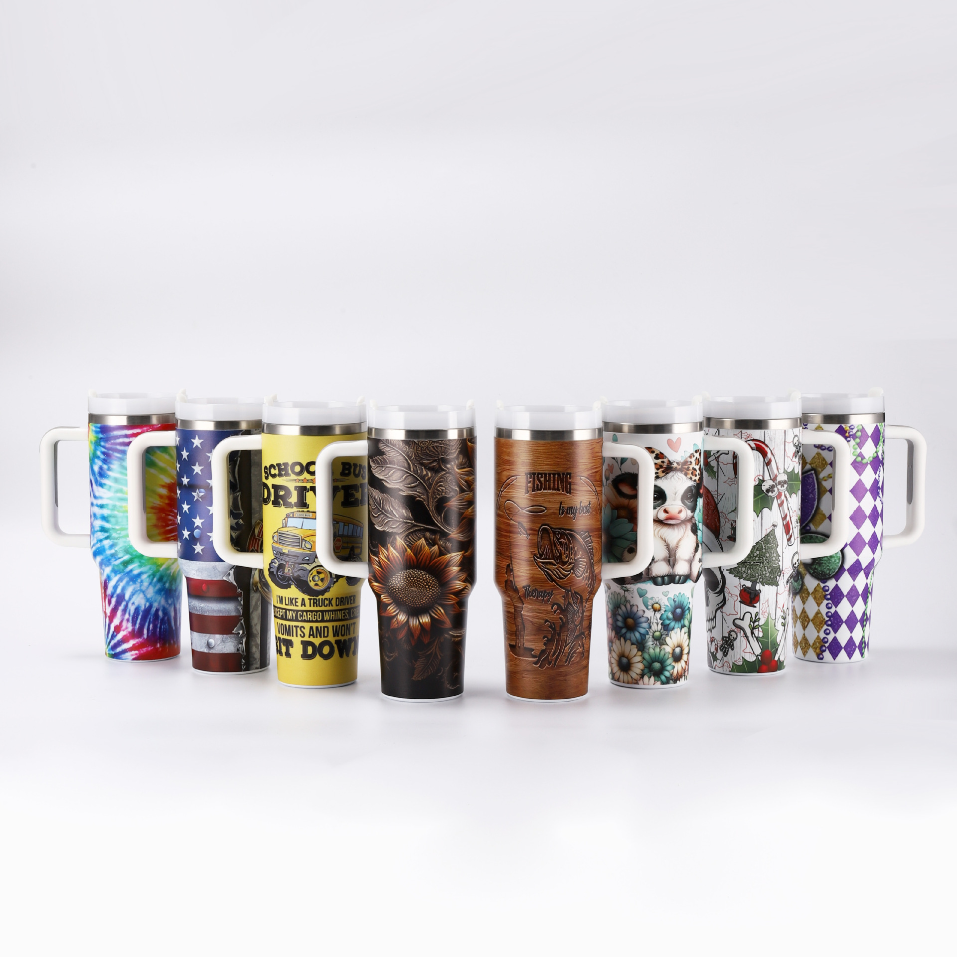 핸들 아이스 컵 패턴 로고 사용자 정의 재고 도매와 국경 40 온스 자동차 컵 거대한 머그잔스토어 가기